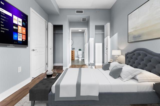 A sophisticated retreat in the heart of Little Italy, this recently upgraded 1-bedroom residence blends modern design with serene courtyard views. Quartz waterfall countertops, elevated finishes, designer lighting, and warm wood flooring create a refined ambiance throughout. Enjoy your private balcony overlooking the cascading water and lush landscaping of an urban sanctuary, or take advantage of your many amenities—pool, gym, library, and grilling nooks! For transportation ease, you’ll be blocks from the train depot and tram stops and minutes from the airport— and all just moments from the city’s best dining and waterfront lifestyle. Location, Location, Location!