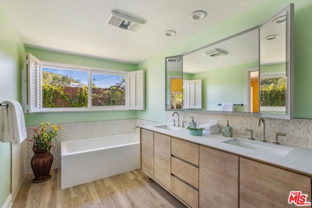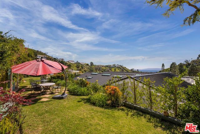 Welcome to 1336 Bienvenida Avenue, a tranquil retreat nestled in the coveted hills of Pacific Palisades. This inviting 4-bedroom, 2.5-bath residence offers privacy, comfort, and effortless California living all year round. You will be overwhelmed by the ocean views, serenity, and convenience to walking trails. A spacious living room welcomes you with rustic wood-beamed ceilings and an abundance of natural light, creating a warm yet open atmosphere ideal for both relaxing evenings and stylish entertaining. Plus, a special remodeled primary bathroom that feels like a spa, large family room, spacious dining room and eat-in kitchen. The interior layout flows seamlessly outdoors to a spectacular backyard designed for resort-style enjoyment.The private outdoor sanctuary features a stunning pool with both solar and gas heating, a rejuvenating spa, expansive decking for lounging and dining, and lush professional landscaping that enhances both beauty and privacy. Whether hosting lively gatherings or enjoying peaceful mornings, this outdoor setting delivers the ultimate Southern California lifestyle experience.Move-in ready and thoughtfully updated, the home blends timeless charm with modern convenience, making it ideal for families, entertainers, or anyone seeking a serene escape close to everything.This is a rare opportunity to lease a turnkey property in one of Los Angeles' most desirable coastal communities.