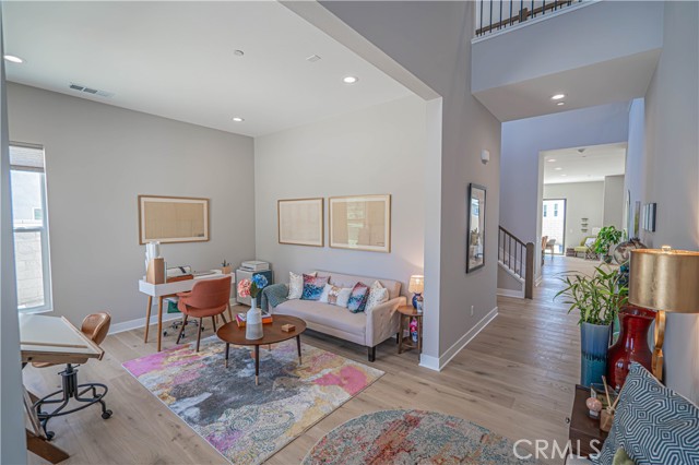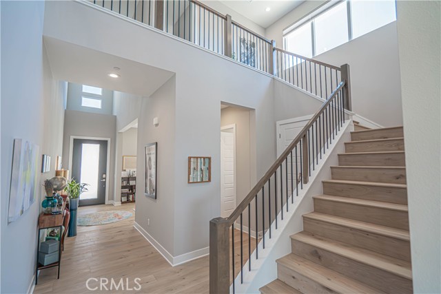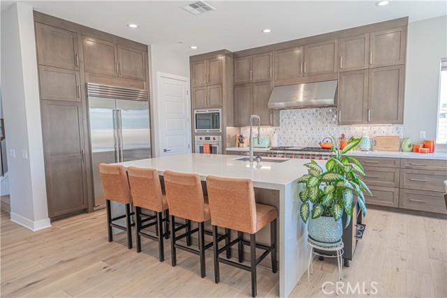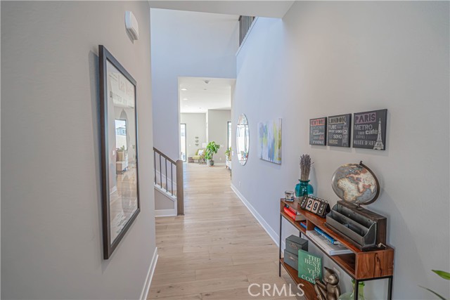 Welcome to 27871 Screenplay Place—an exquisite Toll Brothers Merle model located in the highly sought-after Skylar neighborhood of Valencia’s FivePoint community. Built in 2024, this luxury residence is BETTER THAN NEW and combines modern elegance with thoughtful upgrades, offering 5 spacious bedrooms, 4.5 baths, and 3,903 square feet of finely crafted living space on a generous 7,500 sq ft lot. Just minutes from the 5 Freeway and Valencia Town Center’s Westfield Mall, this home also sits within the award-winning Newhall School District, making it an ideal location for families and commuters alike. Step inside to real hardwood floors flowing throughout the home, anchored by a warm gas fireplace in the expansive great room. The chef’s kitchen is a true showstopper, featuring upgraded cabinetry, dual sliding glass doors that open to the backyard, and top-of-the-line appliances—including a 48" Sub-Zero refrigerator/freezer, a 42" 6-burner Wolf gas range with oven, and an additional wall-mounted Wolf oven. Luxury continues with a zoned dual-unit HVAC system enhanced by a whole-home AprilAire steam humidifier, promoting better respiratory health and preserving your hardwood floors. The LifeSource water filtration system ensures fresh, filtered water throughout the home. Fresh new landscaping completed in February 2026. A spacious 3-car tandem garage includes an EV charger, providing both practicality and forward-thinking convenience. From its upgraded features to its premium location, 27871 Screenplay Place offers a rare opportunity to own a truly turnkey home in one of Valencia’s most dynamic communities.
