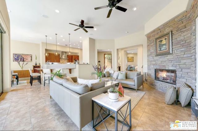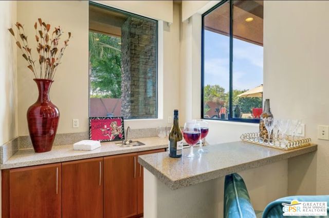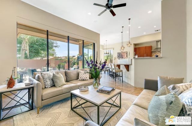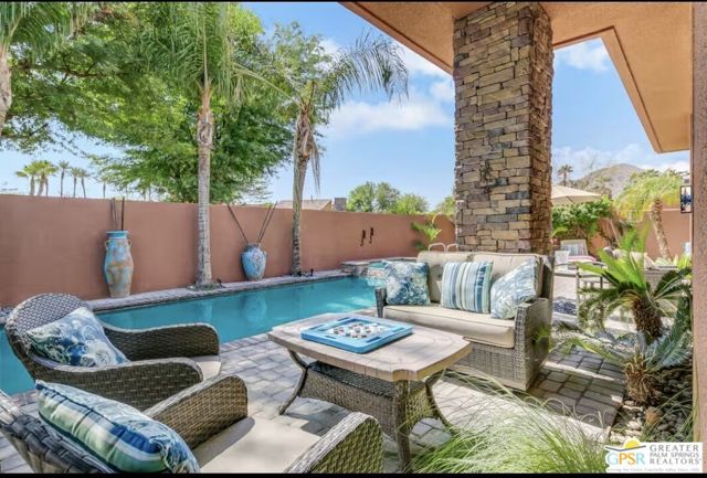 Highly upgraded interior, with new furniture and flat screen TV's. Tranquill private setting, 5 minute walk to grocery store and restaurants. Golf Cart garage and access from community to the Citrus golf club. Great La Quinta location, quick access to polo grounds, Tennis Gardens, Coachella and Stagecoach. This is a high end furnished Oasis with amazing pool spa and outdoor sitting areas, and outside TV. Located in Palmilla has won awards for the best hidden luxury homes, and best Architect awards.