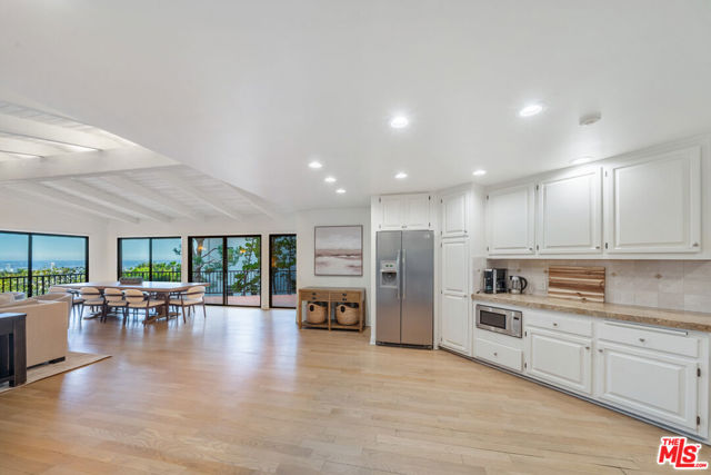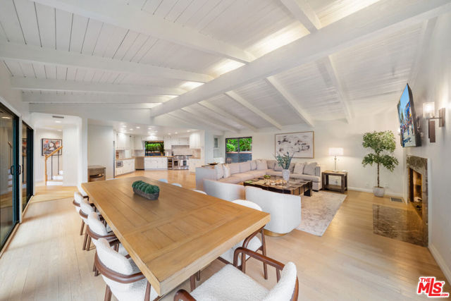 Beautifully renovated Mid-Century home offering abundant natural light, privacy, and sweeping treetop and city views. The open kitchen flows into the living and dining areas, featuring a fireplace and a spacious entertainer's balcony.The home offers 3 bedrooms and 4.5 bathrooms, plus a bonus room converted into a large suite. All bedrooms are en-suite, with select rooms featuring fireplaces and beautiful views. A large family room with fireplace opens to a private patio, and an indoor jacuzzi adds a spa-like element to the home.Perched atop a gated private driveway on a quiet street, the property offers exceptional privacy while being just minutes from Rodeo Drive, Beverly Hills shopping, and dining.