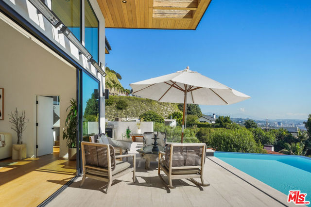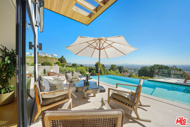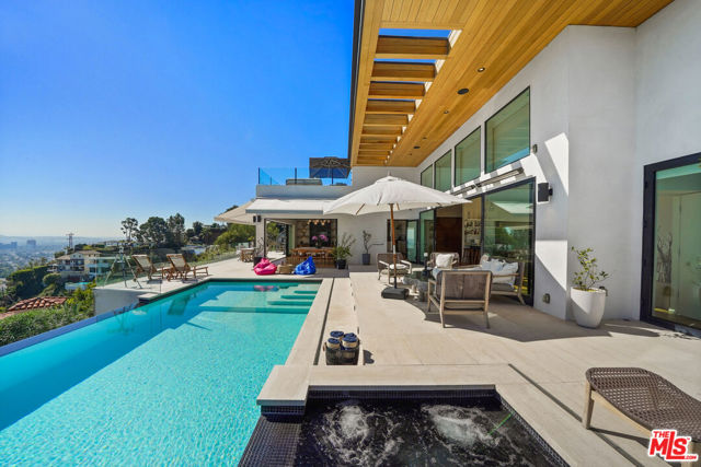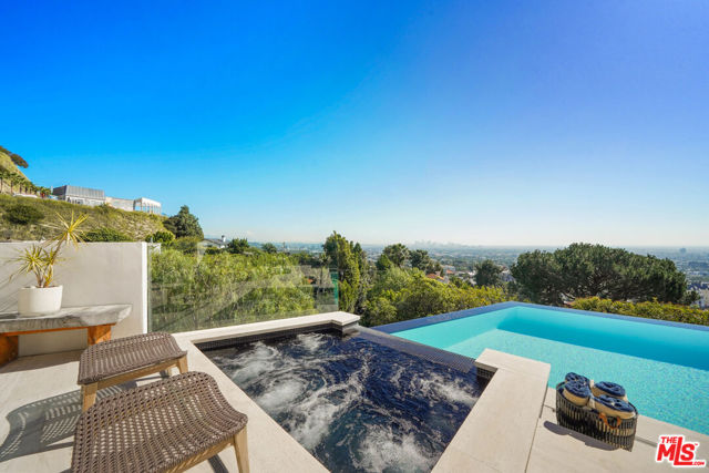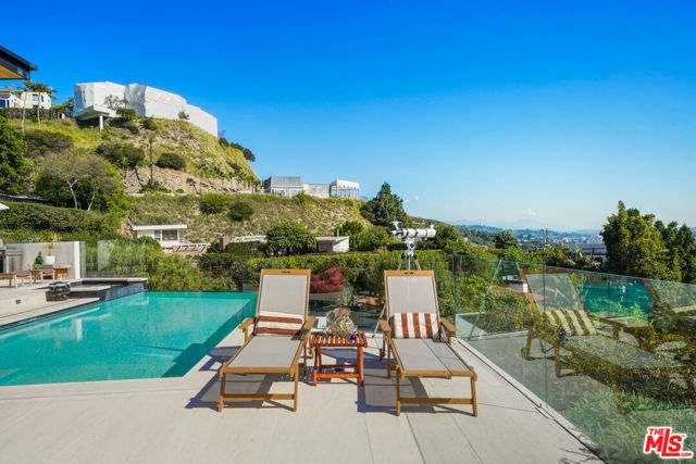 Designed for comfort, style, and unforgettable views, this stunning single-level residence spans approximately 3,000 square feet of refined modern living.The home features a spacious primary suite with a luxurious en-suite bath, along with a versatile second bedroom ideal for guests, a private office, or creative space. The open-concept layout seamlessly blends indoor and outdoor living.Floor-to-ceiling windows showcase exceptional panoramic views, filling the home with natural light. The modern kitchen and living areas flow effortlessly to the outdoor terrace, where you'll find an infinity-edge pool, spa, and elegant lounge areas perfect for relaxing or entertaining.Thoughtfully curated with high-end furnishings and designer finishes throughout, this private retreat also offers a rooftop deck for breathtaking sunset views all just moments from the best of Los Angeles.
