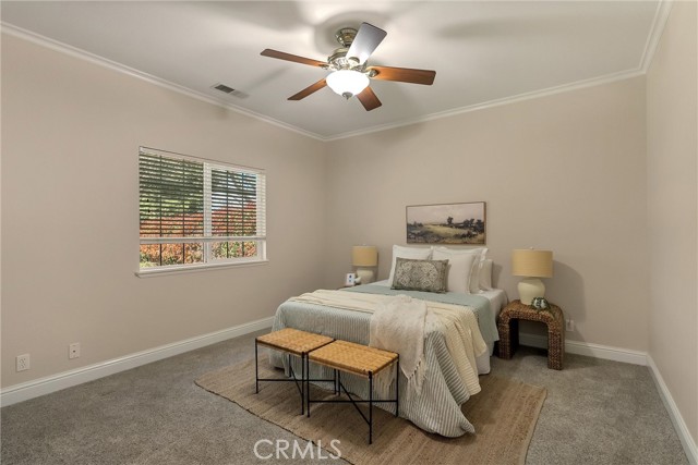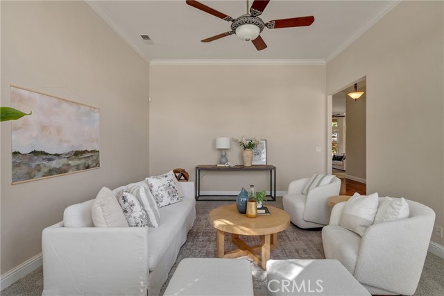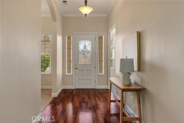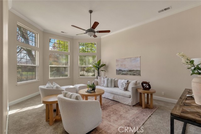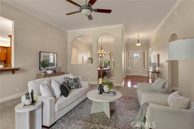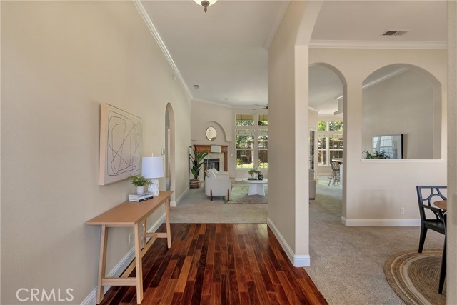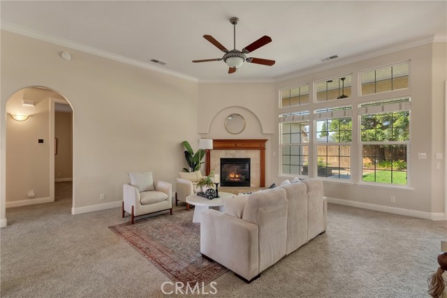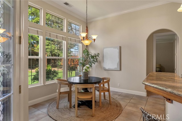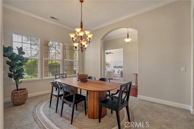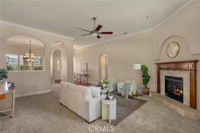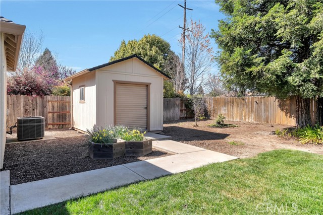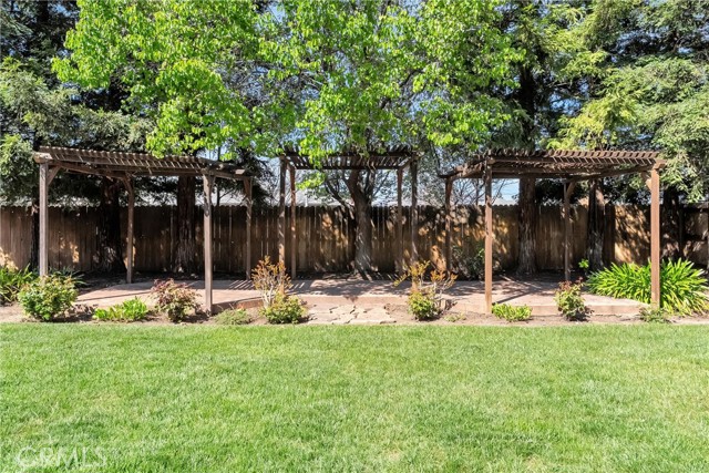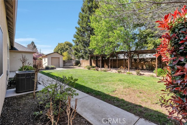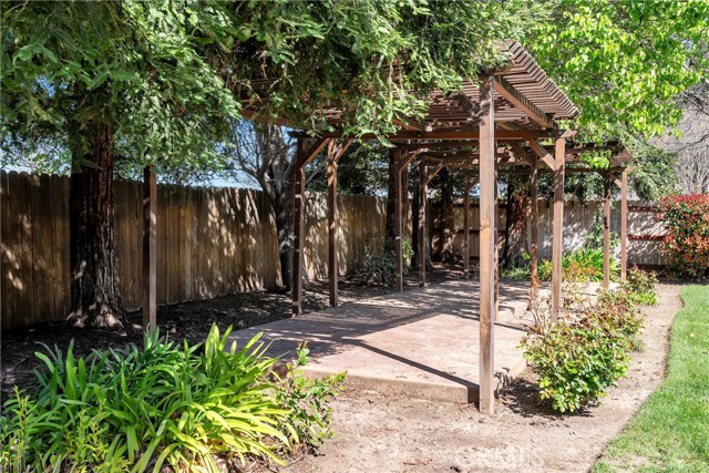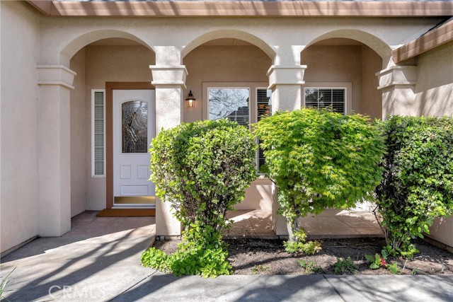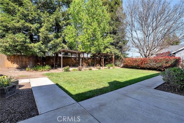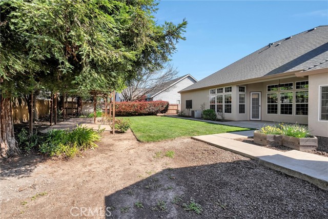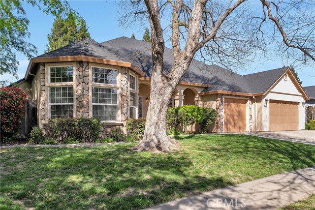 Some homes carry a quiet sense of presence the moment you arrive. Set within one of Chico’s most desirable neighborhoods, this thoughtfully designed residence offers space, comfort, and understated elegance. A welcoming front porch leads into an entry finished with rich wood flooring. From here the layout unfolds naturally. A bright formal sitting room with crown molding offers a welcoming place to gather or unwind. The formal dining room provides an elegant setting for dinners and celebrations while remaining visually connected to the main living spaces. The living room rises with high ceilings and centers around a gas-start fireplace with a warm wood mantle, creating a space that feels open and inviting. Nearby, the kitchen and dining nook overlook the backyard and naturally become the heart of the home. Granite countertops, abundant cabinetry, bar-top seating, and a walk-in pantry offer both beauty and function. Double ovens, a gas cooktop, and a Wi-Fi connected microwave make everyday meals and entertaining effortless, while the dining nook offers a relaxed place to gather with backyard views. The home’s split floor plan offers comfort and privacy. Two guest bedrooms sit near the kitchen alongside a hall bath with dual sinks and a separated bath area. Across the living room, the largest guest bedroom features dual closets and generous space, ideal for guests or a home office. The primary suite offers vaulted ceilings, a walk-in closet with shelving, and private access to the backyard patio. The en-suite includes dual sinks, and a jetted soaking tub overlooking the yard. Outside, the backyard invites gathering and relaxation. A covered patio extends the living space outdoors while three pergola areas create places for dining, lounging, or weekend barbecues. Raised garden beds and a large storage shed add both beauty and function, while the yard enjoys added privacy with no homes directly behind. The interior of the home has been professionally painted and a new furnace was installed in 2026. Hartley Park offers open green space, playground areas, and a basketball court just down the street. Nearby Degarmo Park features ballfields, picnic areas, a pavilion, dog park, and the new Beyond Golf facility with its nine-hole course, driving range, and food truck gathering spot. Spacious, welcoming, and beautifully positioned within a well-established neighborhood, this home offers a setting where everyday living and gatherings come together naturally.