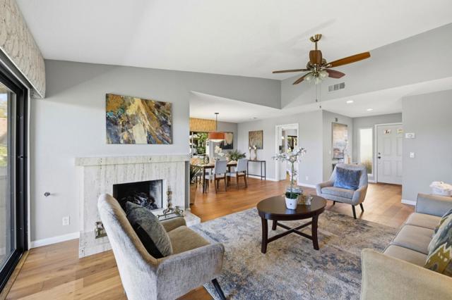 Turnkey, light-filled 1,497 sq. ft. energy-efficient home with owned solar in the desirable Village Hermosa neighborhood of The Villages Golf and Country Club, Silicon Valley's premier 55+ gated active-adult community offering resort-style amenities. **Elegantly maintained**, this beautifully updated residence offers 2 bedrooms and 2 baths with stylish upgrades and move-in-ready convenience. The inviting open layout is ideal for everyday living and entertaining and is highlighted by a cozy gas fireplace. Remote-control window shades with elegant cornices enhance the dining room, living room and bedrooms, offering comfort and convenience. Skylights in the hallway and bathrooms bring in abundant natural light, creating a bright and airy atmosphere throughout the home. Residents enjoy exceptional amenities including a championship golf course, clubhouse restaurant and Bistro, fitness center, pro shop, four swimming pools with hot tubs, tennis, pickleball and bocce courts, scenic hiking trails and more than 60 clubs and activities.