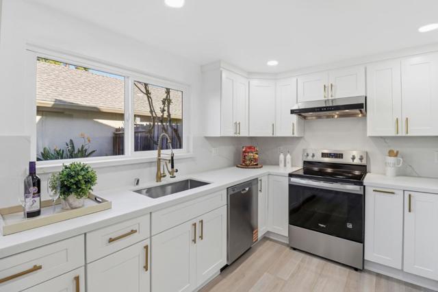 Nestled in the beloved and well-maintained Bay Vista community, this beautifully remodeled townhouse enjoys one of the best location in the complex facing an expansive park-like greenbelt. Light-filled and spacious, with four bedrooms and two and a half baths. The brand-new open kitchen features modern cabinets, stainless-steel appliances, quartz countertops. The dining area sits next to the kitchen, with sliding doors leading to a private back patio perfect for entertaining and relaxing. The home also features new LED recessed lighting, new remodeled bathrooms, a new craftsman-style entry door, new interior doors, new double-pane windows, new sliding glass doors, and new flooring throughout. A two-car garage with new finished walls and an epoxy floor is directly accessed from the back patio. A convenient laundry closet includes a new front-load washer and dryer. The inviting family room features a cozy fireplace and opens to a charming front porch with flowering trees. The spacious primary suite offers high ceilings, a walk-in closet, and lovely views of the greenbelt and sparkling pool. Ideally located near Gull Park, Bayshore Trail, top-rated schools, Beach Park Plaza, Ranch 99, Costco and with easy access to freeways.