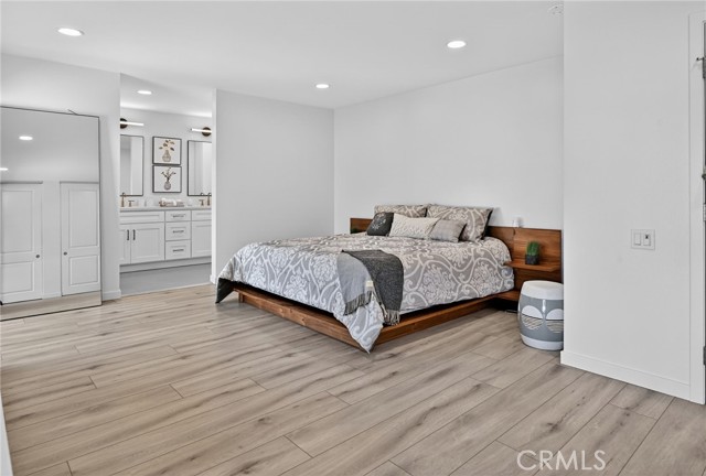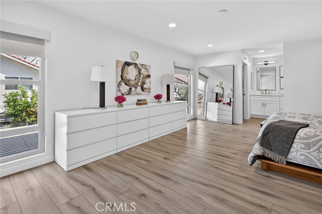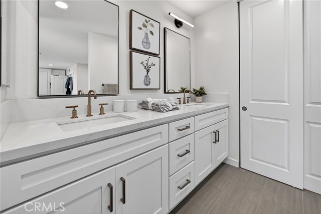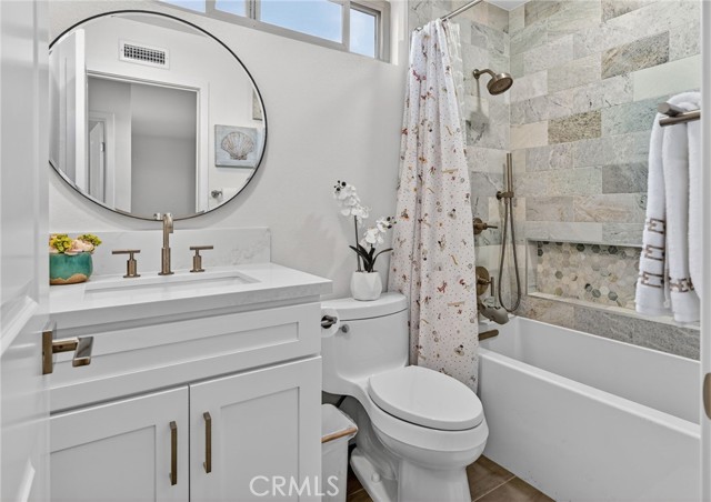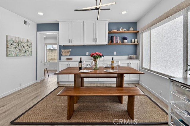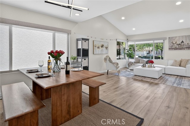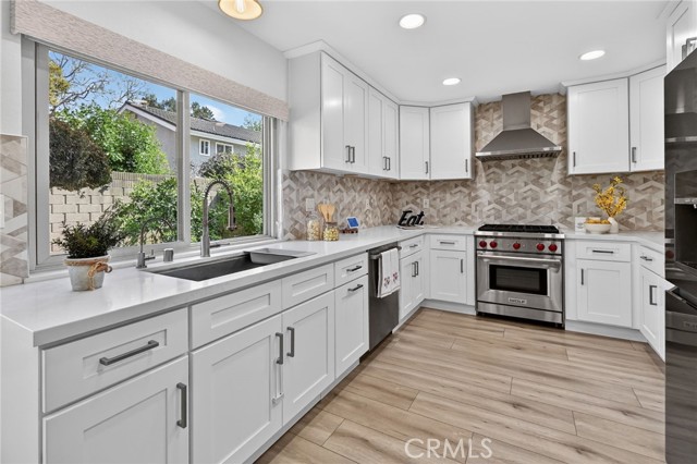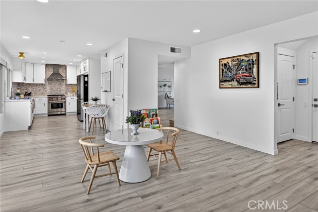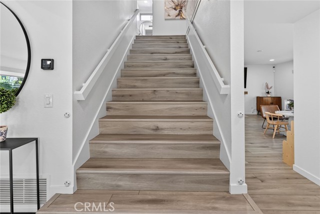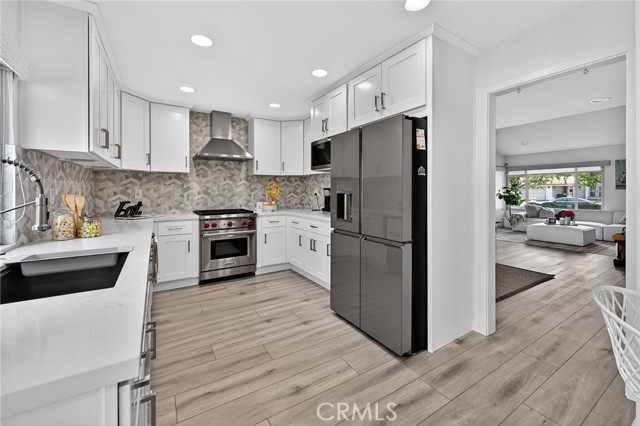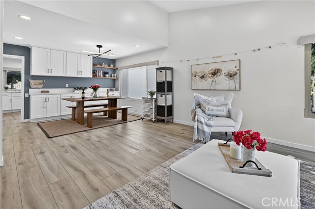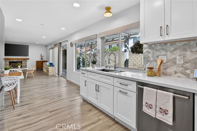 The Graceful Poetry of Inspired Harmony! Extensively renovated in October 2023 with approx $200,000 in sophisticated upgrades, this beautifully reimagined residence blends timeless elegance w/ contemporary accents in a tranquil cul-de-sac setting. Enter a bright, free-flowing interior highlighted by cathedral ceilings, leveled floors, resplendent luxury vinyl plank flooring w/ stylish baseboards, recessed LED lighting, custom fabric roller shades & thoughtfully curated finishes throughout. Its newly-painted interior walls provide a versatile canvas for any décor style. The dining area is beautifully enhanced by a modern linear chandelier & built-in shelving. The inviting family rm centers around a refaced gas fireplace w/ decorative stacked stones, a custom hearth flush w/ the floor & floating TV mount. The stunning chef’s kitchen features shaker-style cabinetry w/ solid wood frames, quartz countertops, Sedona hexagon porcelain tile backsplash, farmhouse sink, Kraus faucet & a custom built-in pantry. Premium appliances include a Wolf professional 4-burner gas range w/ convection oven, Bosch dishwasher & Whirlpool built-in microwave. The spacious primary suite offers luxury vinyl plank flooring, recessed LED lighting, custom roller shades & three closets w/ sliding paneled doors. The spa-inspired primary bath showcases a quartz dual-sink vanity, designer mirrors and lighting, Kohler fixtures, Lenox gray porcelain tile flooring & a glass-enclosed shower with Belucci Bianca porcelain tile surrounds & a marble mosaic niche. 2 additional bathrooms are luxuriously upgraded w/ quartz countertops, shaker cabinets, Kohler fixtures & designer lighting. The upstairs hallway bath features a bathtub with Caribbean green tumbled marble tile surrounds & an oversized shampoo niche w/ Caribbean green hexagon polished marble mosaic. 3 secondary BR offer comfort & style with LVP flooring, recessed lighting & custom fabric roller shades. Additional highlights include dual-pane windows, central a/c & heating, an upgraded 200-amp electrical panel and a Spanish-style concrete tile roof. The 2-car garage features epoxy floors, ample cabinetry, sectional roll-up door & GE Café refrigerator. The private yard includes mature fruit trees—avocado, persimmon, pomegranate & orange—w/ automatic sprinklers. Located just 2 homes from HOA tennis courts & close to premier shopping, dining, parks, the renowned Cerritos Library, and within the highly sought-after ABC Unified School District.