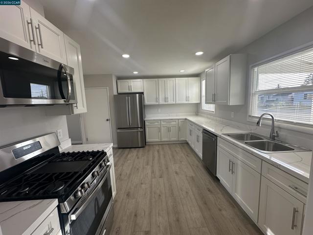 Beautifully remodeled ranch style home located in the highly desirable Washington Manor area of San Leandro. Bright interior with lots of windows and natural light. Nice open floor plan. Large back yard with large deck for those special occasions. This lovely Home has been completely remodeled, new kitchen, new bath, new roof, new flooring, new windows, new furnace, recess lights, new interior and exterior paint and more. Great location with easy access to freeways, close to all amenities such as schools, recreation parks, shopping, hospitals, and more. Must see to fully appreciate. Ready to move in.