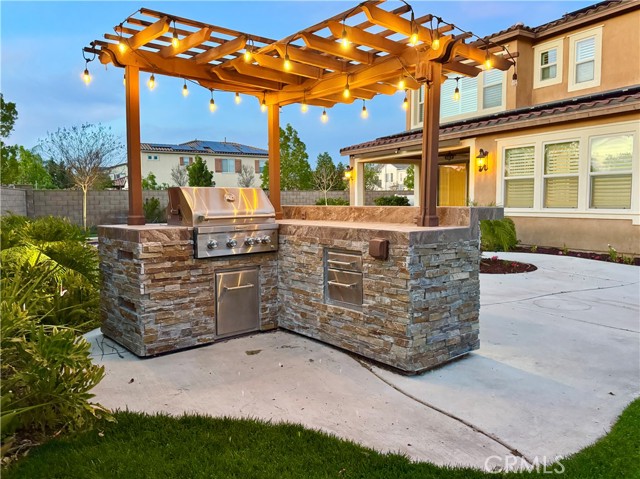 Pool home with paid off solar and desirable downstairs primary suite, plus upstairs primary suite on a 10,000+ sq ft cul-de-sac lot in Heritage Lake. Entertainer’s backyard features a private pool, spa, and built-in BBQ with seamless indoor–outdoor access through a 3-panel slider. The open floor plan offers formal living and dining areas, family room, granite kitchen with double ovens and a butler’s pantry, plus an upstairs loft and a second primary suite. Additional upgrades include dual AC units, tankless water heater, whole house fan, plantation shutters, crown molding, a water softener, and two Tesla EV chargers. Homes with this combination of pool, paid solar, and a large cul-de-sac, corner lot rarely come available in Heritage Lake.