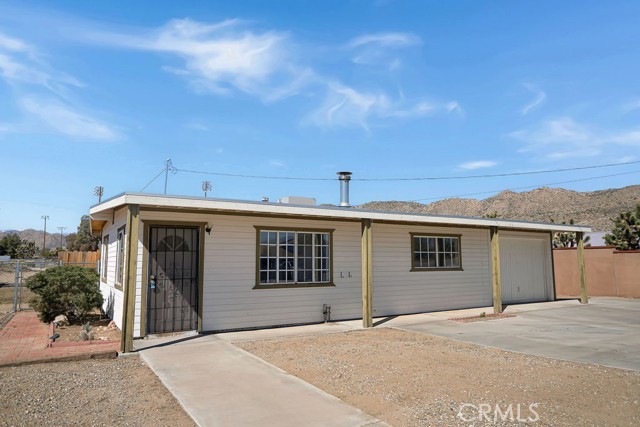 Priced to sell! This 2-bedroom, 1-bathroom 1960s gem sits on just under 1 acre of land in the heart of Yucca Valley! As you drive to the property, you’ll notice its ideal location. Not far from restaurants, shopping, and other attractions in Yucca Valley, convenience is at your fingertips. As you pull up to the property, you’re greeted by chain-link fencing, a large concrete driveway, and charming wood paneling siding. Stepping through the front door, you’ll find carpeted flooring, plenty of natural light flowing through the well-placed windows, and a wood-burning stove that ties it all together. The kitchen and dining area are equipped with tile backsplash, cabinetry, a microwave, a refrigerator, an oven, and direct access to the backyard! The full bathroom features a built-in cabinet, a vanity, a medicine cabinet, and a full bathtub/shower with a mosaic-tiled backsplash. Each bedroom has plenty of space and includes closets, ceiling fans, and carpeted flooring. Stepping into the backyard, you’re ready to host barbecues or get-togethers. A nice brick patio with a mix of chain-link and wood fencing is set up and provides a great spot for your dogs! Outside of the fence line, the lot extends much further, with plenty of space for a pool, spa, storage shed, or anything you can dream of! Additional features include an upgraded evaporative cooler, a one-car garage with an evaporative cooler, and more! At such a great price, this one won’t last long, so call today before it’s gone!