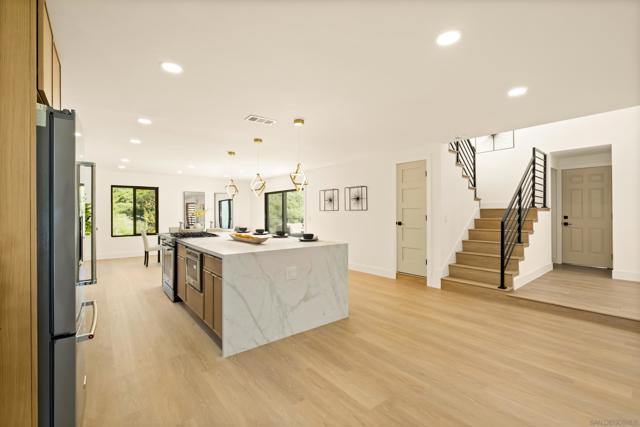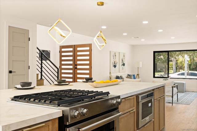 Tucked away on a secluded street in Bay Park, this beautifully remodeled home offers privacy while remaining just minutes from the best of San Diego. The property backs directly to a peaceful valley, creating a serene natural backdrop rarely found this close to the city. A newly constructed oversized deck extends the backyard living space out toward the valley, providing the perfect setting to relax, entertain, and enjoy the surrounding views. Inside, the home has been completely remodeled and is truly turn-key, featuring a modern kitchen with brand-new appliances, new cabinetry, new countertops, and a large center island designed for both functionality and gathering. The interior is filled with natural light thanks to large black-framed windows throughout, giving the home a clean, contemporary feel. The thoughtfully designed layout places all bedrooms upstairs, creating separation between living and private spaces. Additional highlights include a large garage and an extra-wide driveway offering ample parking. With its quiet location, valley views, and high-quality renovation, this Bay Park home delivers modern living in one of San Diego’s most convenient coastal-adjacent neighborhoods.