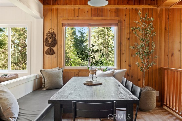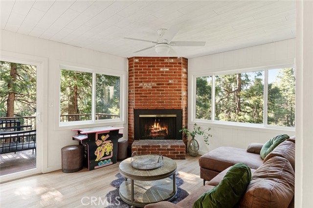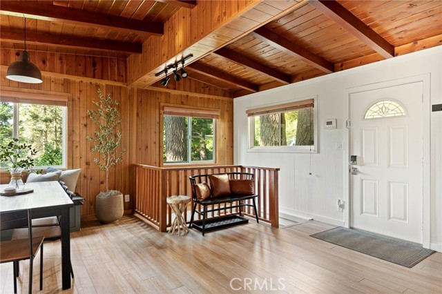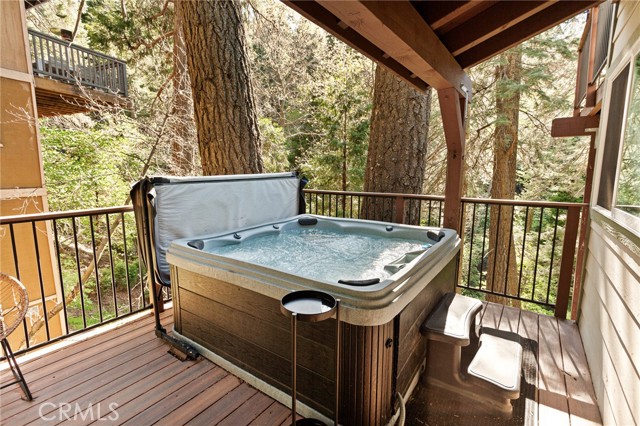 Experience the perfect blend of luxury, investment potential, and breathtaking mountain living in the heart of Lake Arrowhead! Set on an estimated expansive 15,000 sq. ft. lot spanning five parcels, this cabin offers unparalleled privacy amid towering trees and serene natural surroundings, creating a true sanctuary. Recently updated, the kitchen, flooring, and bathroom blend modern convenience with rustic elegance for a comfortable living experience. Inside, the main level features an updated kitchen flowing into the dining area and a spacious living room with a cozy fireplace, fantastic for intimate family gatherings or entertaining friends. Downstairs, you will find two bedrooms with convenient laundry access, complemented by a versatile den that can serve as a third bedroom, office, or creative studio—offering flexibility for any lifestyle. Step outside to your own mountain oasis. The backyard opens to a greenbelt and seasonal stream, providing a tranquil backdrop for morning coffee or evening relaxation. Host unforgettable gatherings on the spacious deck or soak away the stresses of the day in the relaxing jacuzzi beneath the stars. Ample front-of-home parking ensures convenience for guests and family alike. Ideally located just minutes from Lake Arrowhead Village, enjoy easy access to boutique shops, fine dining, and lively local events. Commuters will appreciate the convenient connection to nearby highways, combining mountain seclusion with everyday practicality. Successfully operated as an Airbnb, this property presents both a personal retreat and a proven revenue-generating opportunity. Rarely available, this cabin masterfully balances luxury living, rental income potential, and a prime location, offering a refined mountain lifestyle filled with comfort, convenience, and endless enjoyment!