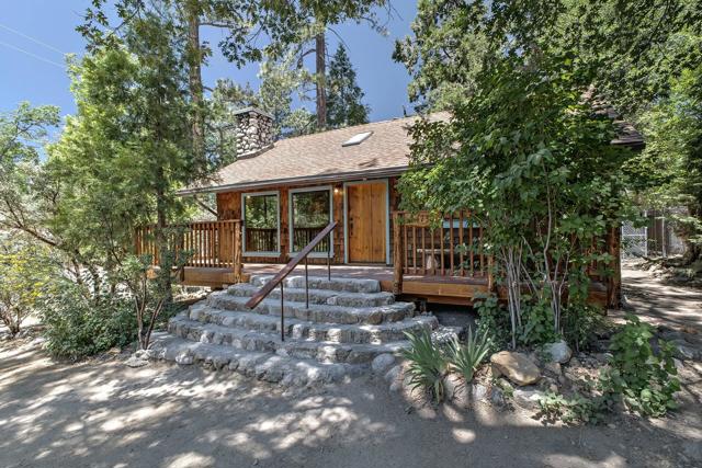 Welcome to this fully restored 1923 cabin on River Drive, one of the most desirable streets in Idyllwild. Located on a corner lot very close to Strawberry Creek access and downtown Idyllwild, this amazing 2 bedroom, 2 bath cabin at the corner of River and Fir has it all: upgraded electrical panel and wiring, new plumbing, new foundation, new insulation, skylights, a new deck with views, a new HVAC (AC and forced air furnace), washer and dryer, as well as a completely upgraded kitchen with new appliances and upgraded bathrooms, all of which feature handmade pine cabinets and pine slab countertops. But many of the original features, like the hardwood floors, river rock fireplace, walls, river rock chimney, windows, and hand-built stone entrance steps, were lovingly restored to maintain and highlight the cabin's original beauty. This incredibly charming cabin boasts a large living room and separate dining room, en suite master bath, as well as a storage shed/workshop and separate laundry area. The .17 flat lot has a former foundation and plenty of room to add a garage, too. Imagine having coffee on your new handmade log bench on your new deck as you watch the sun rise over the mountain ridge. Whether for part time or full time living, properties on River Drive rarely come on the market. Make sure not to miss this amazing gem in the pines!