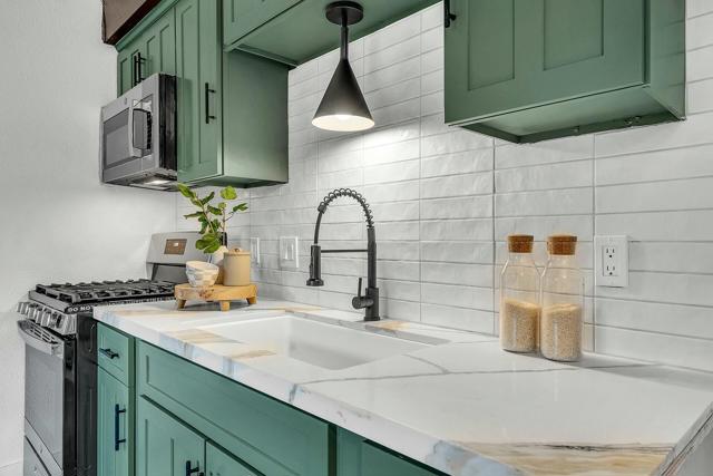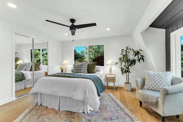 Welcome to a fully-upgraded, charming mountain property nestled in rustic Pine Cove just minutes from downtown Idyllwild. This beautiful 2-bedroom, 2-bathroom home is situated on a large lot on a quiet cul-de-sac and exudes modern mountain charm, with a huge wrap-around deck surrounded by a pristine wooded landscape. The very spacious living room features a wood burning stove on a rustic brick corner hearth, new flooring, and new paint throughout the home. The newly remodeled kitchen includes new appliances, new counter tops, new cabinets, and a generous dining area. Both upstairs bedrooms offer plenty of space to relax and enjoy the lovely mountain views out every window, with plenty of closet space and an en suite bathroom off the master bedroom. The entire home is bright and airy, with plenty of light from the new dual pane windows throughout. Upgrades were completed in November of 2024 and the leach lines were replaced in July 2024. Don't miss this incredible opportunity to experience beautiful and affordable mountain living.