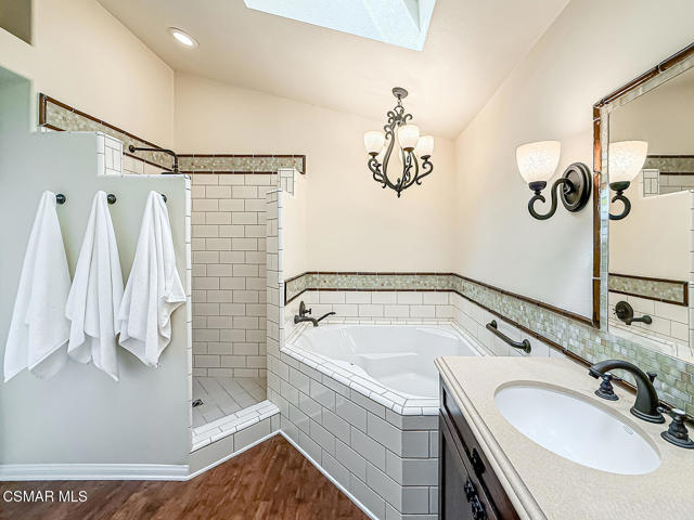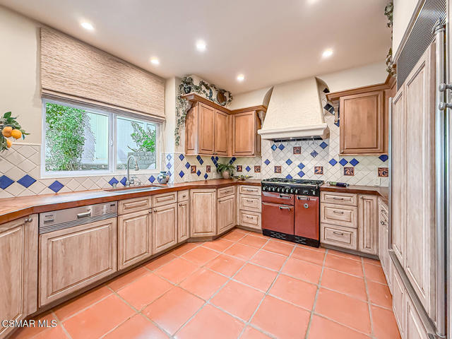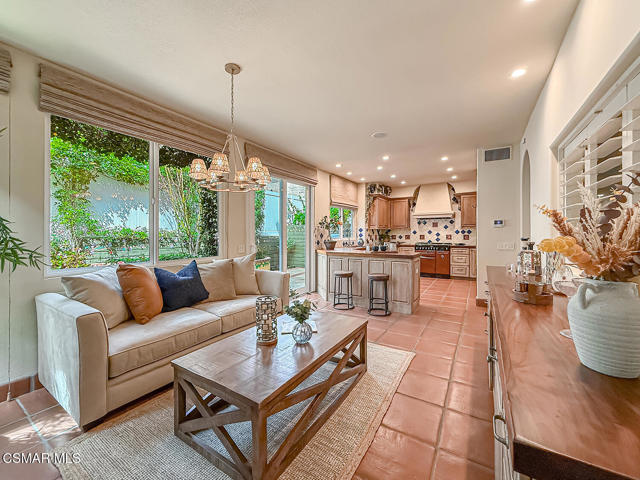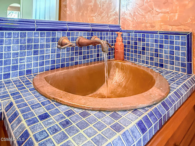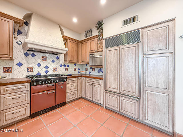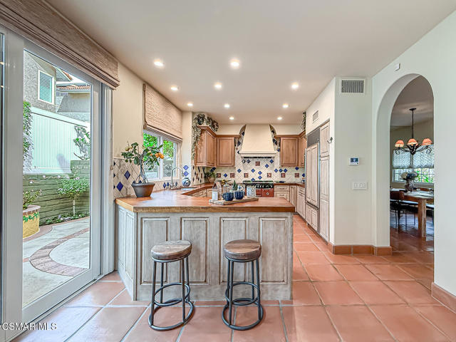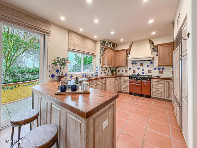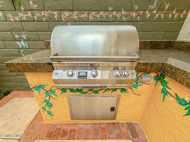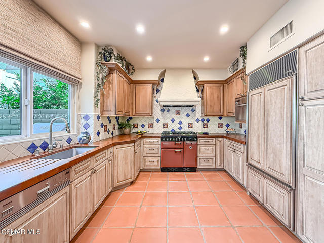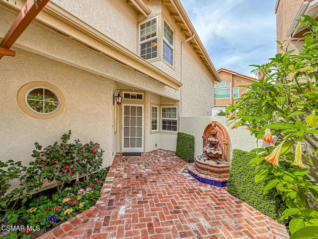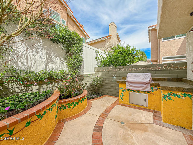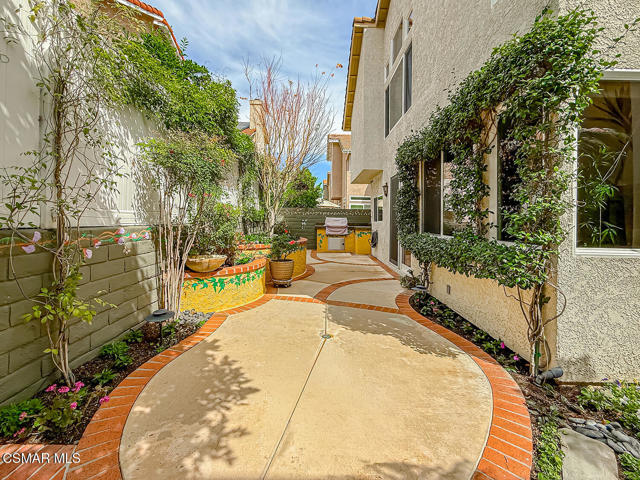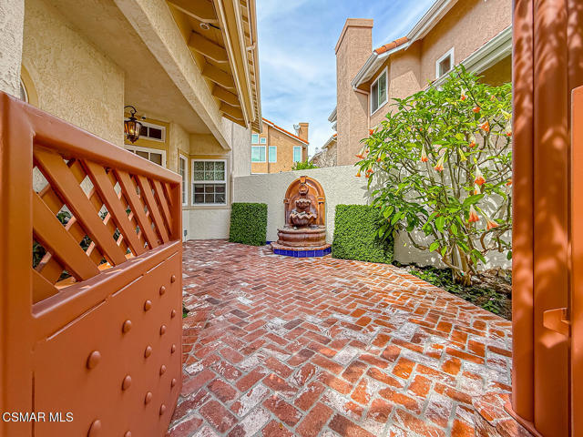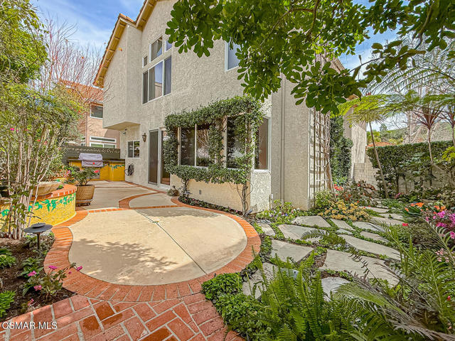 Gated enclosed front courtyard greets you to this highly upgraded Oak Park home. Downstairs offers family room with raised hearth brick fireplace, formal dining and large living room. Expanded gourmet kitchen with custom black walnut counters, cabinets with pull outs, Julia Morgan art tile work (she did Hearst Castle) and high-end appliances (Miele, Aga). Venetian plaster and copper sink Half bath downstairs. Upstairs has huge bonus room, four bedrooms, one customized as office with hand crafted cherry wood built-in wall-ln unit. Good size secondary bedrooms with shared hall bath. Stunning primary suite with custom bath featuring soaking tub and separate tiled walk-in shower plus walk in closet, high ceilings. Built in speakers, wired for 7 channel surround sound. Two zoned quite zone control A/C with variable fan makes home comfortable all the time. Windows have been replaced and expanded in some areas. This is a must see. A lot of thought went into this beautiful landscaping with drainage reworked plus private built-in barbecue in the yard. Two car direct access garage with Plenty of storage cabinets. Development offers community pools and playground in one of the most sort after school districts. This much-loved home is a winner.