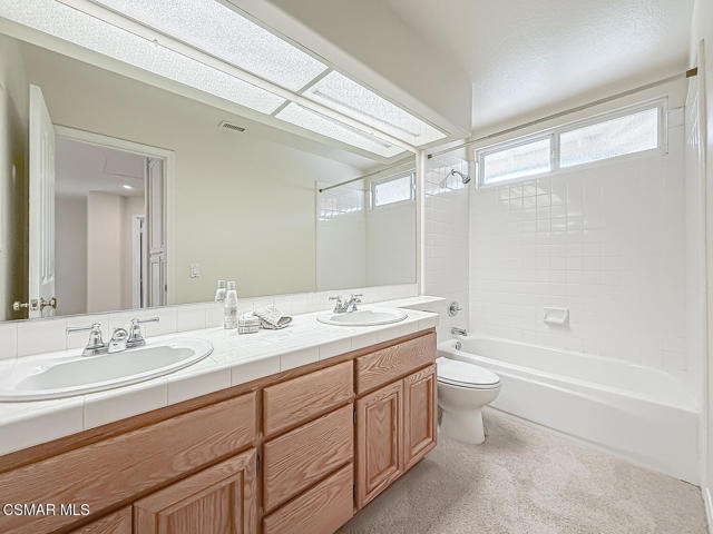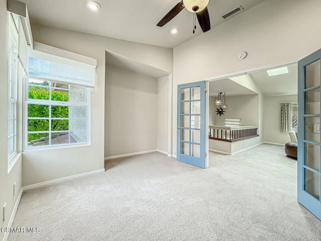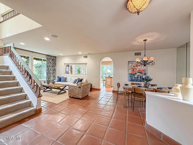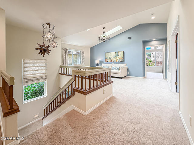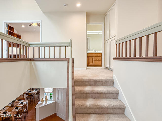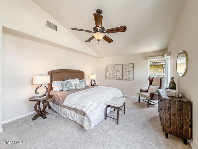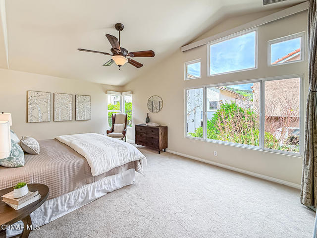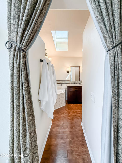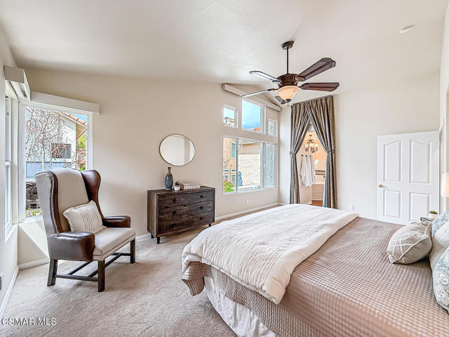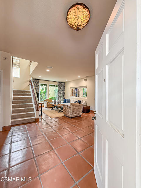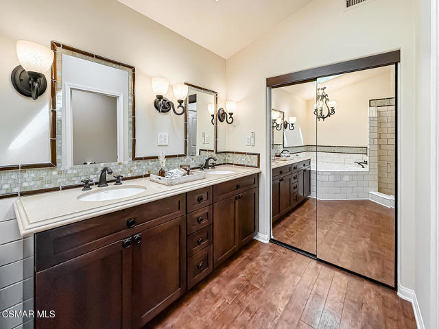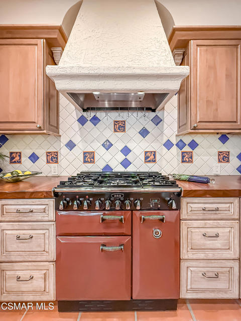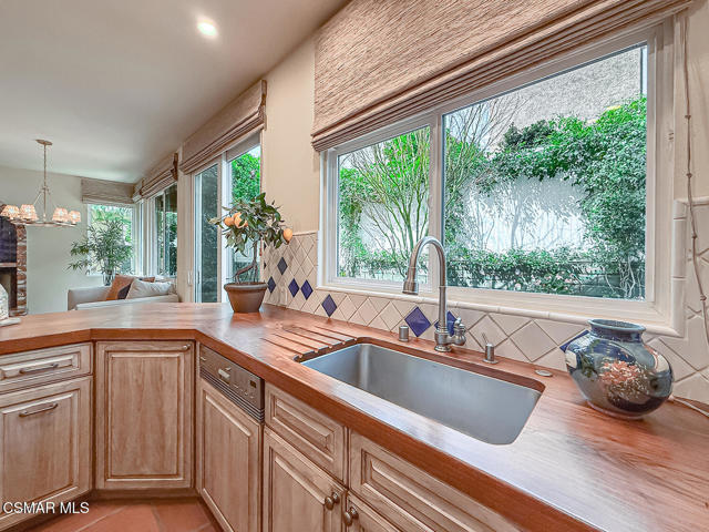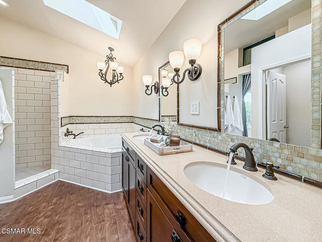Gated enclosed front courtyard greets you to this highly upgraded Oak Park home. Downstairs offers family room with raised hearth brick fireplace, formal dining and large living room. Expanded gourmet kitchen with custom black walnut counters, cabinets with pull outs, Julia Morgan art tile work (she did Hearst Castle) and high-end appliances (Miele, Aga). Venetian plaster and copper sink Half bath downstairs. Upstairs has huge bonus room, four bedrooms, one customized as office with hand crafted cherry wood built-in wall-ln unit. Good size secondary bedrooms with shared hall bath. Stunning primary suite with custom bath featuring soaking tub and separate tiled walk-in shower plus walk in closet, high ceilings. Built in speakers, wired for 7 channel surround sound. Two zoned quite zone control A/C with variable fan makes home comfortable all the time. Windows have been replaced and expanded in some areas. This is a must see. A lot of thought went into this beautiful landscaping with drainage reworked plus private built-in barbecue in the yard. Two car direct access garage with Plenty of storage cabinets. Development offers community pools and playground in one of the most sort after school districts. This much-loved home is a winner.