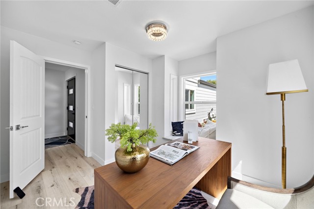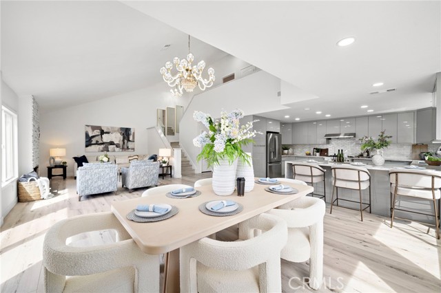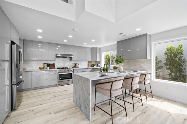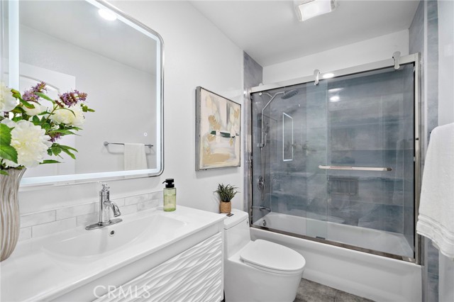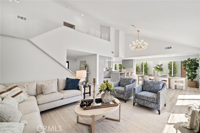 Enjoy this exquisitely renovated home in the highly sought after Northwood community featuring 4 bedrooms, 3 full bathrooms, custom upgrades, and touches of quality craftsmanship throughout! Tasteful design upgrades include luxurious faux wood flooring, crystal light fixtures, porcelain tile and designer vanities in all bathrooms, recessed lighting, and elegant stone bay-window seats and stair railings. The extremely bright and open main level makes the most of modern-style living with a great room filled with an abundance of natural light, high ceilings, a beautiful stone fireplace, two bedrooms (one perfect for an office), and a full bathroom. The completely renovated kitchen features quartz countertops, full backsplash, stainless steel appliances and range hood, plenty of soft-close cabinetry including pantry and lazy susan storage, reverse osmosis water filtration system, and a stylish waterfall peninsula with bar-seating. The second floor includes the primary suite as well as a large ensuite bedroom. Designed as a private oasis, the primary suite features vaulted ceilings, walk-in closet with built-ins, and a spectacular bathroom with floor-to-ceiling porcelain tile, standalone tub, step-in shower, dual sink vanity, and a peaceful private balcony. The freshly landscaped and fully enclosed front, side, and backyard create the ultimate outdoor living space perfect for relaxing, entertaining, and the potential for further personal touches. The residence offers ALL NEW: water softening system, dual pane windows, doors with high-end hardware, 200-amp electrical panel, fresh interior and exterior paint, epoxy garage flooring, water heater, reverse osmosis filtration system, concrete hardscape, roof, vinyl and iron fencing, rain gutters, and low-maintenance turf. Conveniently located near the 5 freeway, Carrotwood park and sport court, shopping centers, the Irvine Spectrum, Jeffrey Open Space Trail, award winning Irvine Unified schools, and more!