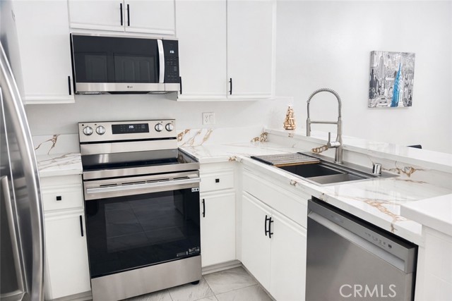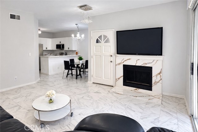 Rare opportunity to own a single story three bedroom first floor condo with over 1,100 sq ft of light-filled living space in the desirable Camelot community of Thousand Oaks. This light and bright home features an open concept layout with abundant natural light, tile flooring, recessed lighting, and a cozy wood burning fireplace with quartz surround and mantle. The updated kitchen offers new quartz countertops, newly painted cabinetry, stainless steel sink and faucet, and new stainless steel appliances. A generous pantry and indoor laundry area with washer and dryer included add everyday convenience. The home offers three spacious bedrooms with ceiling fans and ample closet space. Both bathrooms feature dual sinks and tub shower enclosures, while the primary bedroom includes its own private patio. Enjoy two outdoor patios, one with additional storage, along with central air conditioning and an assigned covered parking space. The Camelot community offers beautifully maintained grounds, pool and spa, and the HOA includes water, trash, and sewer. Conveniently located near shopping, dining, parks, the Civic Arts Plaza, award winning schools, and easy access to the 101 freeway. Turnkey and move-in ready. Come see it before it’s gone.