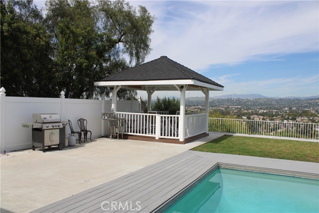This home is for someone with privacy in mind! Fantastic Panoramic Views, Privacy and so much more! Located at the top of La Habra Southern Hills. Welcome to one of the most captivating view homes in Orange County, positioned at the end of a quiet pride of ownership neighborhood cul-de-sac. Architecturally designed for indoor-outdoor living. The property features a very private sparkling, (20’ x 40’) pool, framed by a charming stone planter, block-wall fences and wonderful views. A unique and beautiful backdrop for entertaining. Additionally at the rear edge of the back yard, there is a gazebo and barbecue area with a tranquil setting for your enjoyment. The entry offers beautifully hand-carved hardwood entry doors. As you enter the foyer, you’ll be greeted with breathtaking, unobstructed views of the mountains and la Habra Heights city skyline. From the LA Skyline, to Mount Baldy, the views are breathtaking. Inside, is a flowing floorplan with living room, the formal dining area a separate family room with a cozy fireplace that creates the family kitchen. The kitchen and family room overlook the pool and has those views. This home is a four bedroom, two bath home. The Main suit, kitchen, and family room have views. Modern appliances, central AC, crown moldings, fireplace, inside separate laundry room and the home has camera security surveillance and a remote security gate. Daily living experiences, spectacular sunsets and shimmering city lights are such a rear find. When the world is moving so fast today, you will be enjoying the ideal setting to relax. Wither entertaining or a quiet afternoon in the pool, you can unwind after a long day from the comfort of your own home.