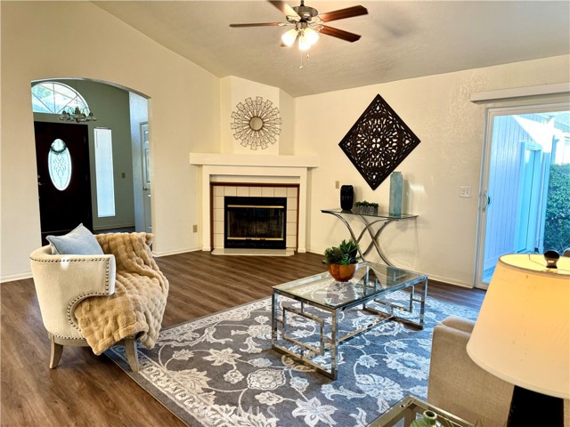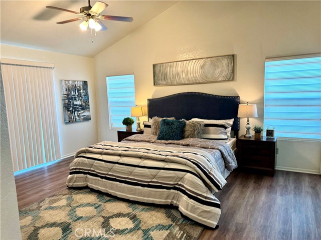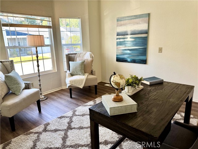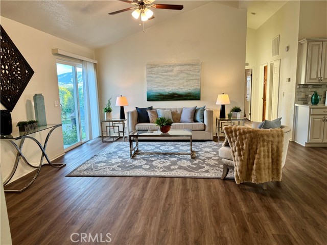The greatest value! This charming home features an attached two-car garage with direct access, offering convenience and comfort. The spacious floor plan includes 2 bedrooms, 2 bathrooms, plus a versatile third room—perfect for a home office, guest room, or flex space. The home features upgraded laminate flooring throughout and a remodeled kitchen with quartz countertops and custom window coverings. The primary bedroom includes an en-suite bathroom for added privacy. Cozy fireplace in the family room. The family room slider opens to a beautifully landscaped backyard with amazing city views, creating a wonderful space for relaxing or entertaining. Located in Canyon View Estates, this home currently has a monthly land lease of $1,670( subject to change), which includes access to community amenities such as a 24-hour guard-gated entrance, two pools and spa, two sports courts, and two play areas. The community also offers a clubhouse and RV storage. Conveniently located near parks, bike trails, shopping, and entertainment, with easy freeway access and nearby access to the Metro-link.