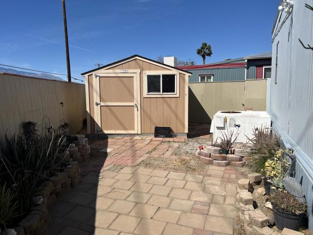 GREAT OPPORTUNITY! PRIVACY, VIEWS & PLENTY OF PARKING!This charming 2-bedroom, 2-bathroom manufactured home offers comfort, privacy, and nice views of the San Jacinto Mountain and golf course. The home is being sold fully furnished and includes all appliances. Enjoy comfort with central A/C and heating, plus a swamp cooler for an energy efficient cooling option.The property features a private backyard with a new storage shed and enough space to create a small garden or simply relax and enjoy the peaceful surroundings. Ample parking adds to the convenience of this well located home.Situated in the highly desirable Desert Crest Country Club, a 55+ senior community where YOU OWN THE LAND (no space rent!), with low monthly dues of only $152.Residents enjoy exceptional amenities including:Unlimited golf on a 9-hole par-3 courseNatural hot mineral water pool & spaClubhouse with game room, library, and gymEntertainment and social facilities8 enclosed shuffleboard courtsAll streets are county-owned and maintained, and utilities include city water, sewer, natural gas, and cable/satellite services.An active lifestyle awaits with aqua aerobics, longevity (stick) exercises, line dancing, weekly gatherings, dinner dances, bingo, golf, and shuffleboard.The perfect place to live, relax, and enjoy resort-style desert living!