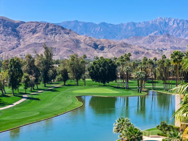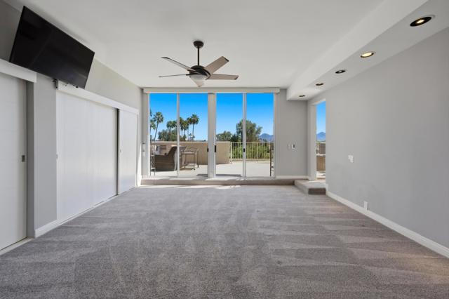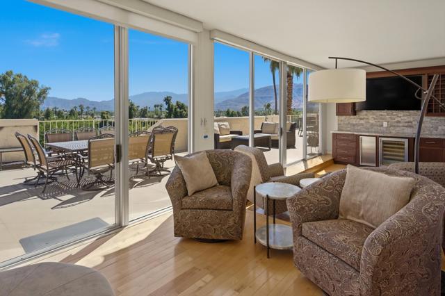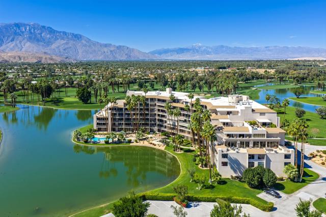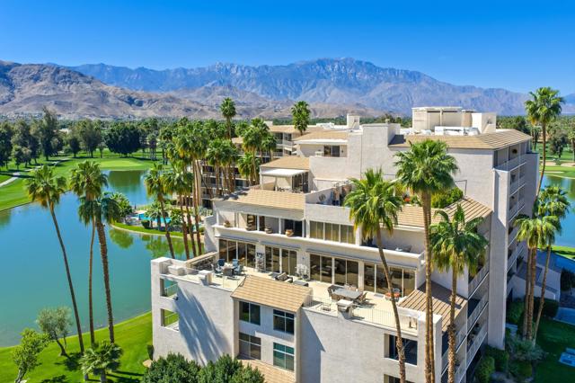Vacation at home in this three-bedroom, three-bathroom condo in the sought-after Desert Island community. As an end-unit, it offers three balconies and several living areas, including a flexible study or office space for art, crafts, or working from home. Large windows fill the rooms with natural light. The open layout connects smoothly to the living area, making it a great spot for gatherings. Floor-to-ceiling sliding glass doors lead to a balcony that stretches the length of the condo, ideal for indoor-outdoor entertaining. Desert Island is a high-rise community set around a peaceful lake, with an 18-hole golf course close by. On-site, you'll find a management office and helpful HOA services that make daily life easier. Amenities include tennis and pickleball courts, pedal boats, catch-and-release fishing, a gym, and a pet-friendly atmosphere. This is resort-style living, where every day feels like a getaway. The location at Frank Sinatra Drive and Bob Hope Drive puts you close to shopping, dining, theaters, galleries, casinos, and Eisenhower Medical Center. The HOA takes care of water, trash, gas, cable TV, and Wi-Fi, so you can enjoy low-maintenance living while all common areas and landscaping are managed for you. Book your tour today, to view this property.