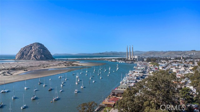 Discover the epitome of coastal elegance in this stunning 2-story home, boasting breathtaking views of Morro Rock and the bay right across the street, conveniently situated opposite a park for endless outdoor enjoyment, and just a short walk to Main Street, Morro Bay where you'll find a variety of restaurants and shops to savor. The main level invites gatherings with two spacious living rooms: a formal living room featuring a grand picture window framing those Bay and Morro Rock vistas, and a cozy family room anchored by a double-sided fireplace that seamlessly warms the adjacent formal dining room, which is enhanced by subtle mood lighting in the ceiling molding. Entertain in style in the gourmet kitchen, showcasing granite countertops, white cabinets, a 5-burner gas cooktop, double ovens, microwave, under-cabinet lighting, recessed lighting, and a convenient center island. A well-appointed half bath downstairs. The laundry room with a sink and window adds practicality downstairs, complemented by a central vacuum system for effortless maintenance throughout the home. Ascend the hardwood stairs to a landing with built-in cabinets, leading to three bedrooms, including a luxurious master suite with a large sitting area, private balcony overlooking the iconic Morro Rock and Bay, and an opulent master bath offering dual vanities, jetted soaking tub, separate shower, private water closet, and expansive walk-in closet. The upstairs also includes two guest bedrooms with a connected bath featuring a tub/shower combo. Outside, enjoy a private, lush backyard and a 2-car garage with cabinets, making this home a perfect blend of comfort, luxury, and prime location.