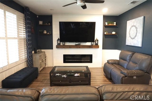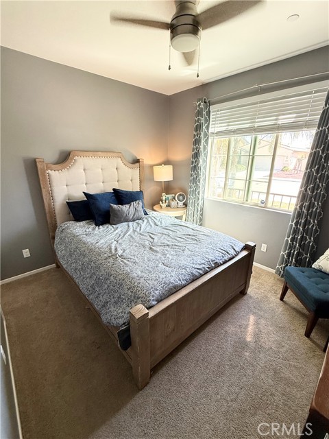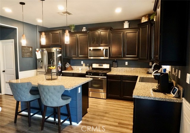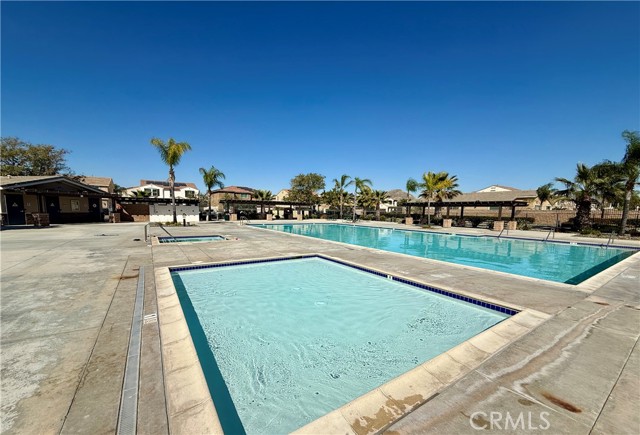 Spacious 5-bedroom, 3 full-bath home built in 2018, offering a functional layout with generous living space. Features an open floor plan, well-sized bedrooms, and a convenient mud room. The garage includes epoxy floors and an EV charging outlet. Enjoy a large backyard with an awning and two lemon trees, providing plenty of space to relax or entertain. Washer, dryer, refrigerator, dishwasher, and microwave are included. The HOA offers biking trails, a pool, jacuzzi, and BBQ area. Great opportunity to own a newer home in Perris and low HOA.