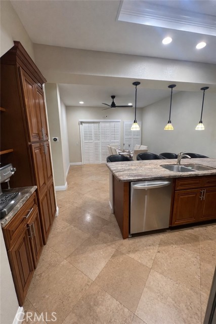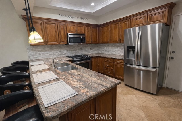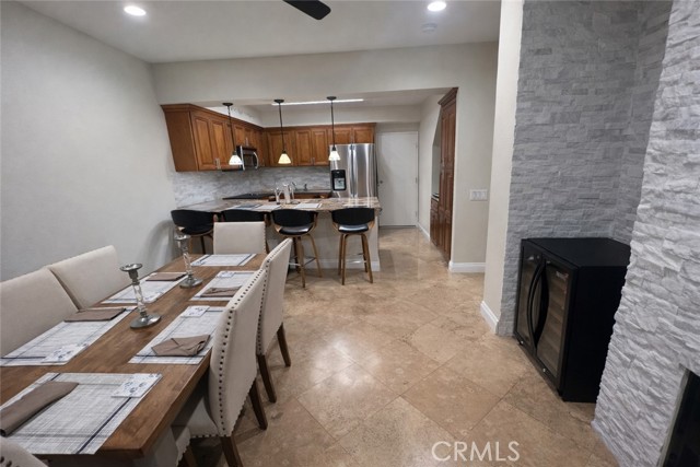 Beautifully upgraded 3BD/2.5BA condo with 1,745 sq ft and attached 2-car garage located in a prime South Orange County community. This light-filled home features an open floor plan with high ceilings, travertine flooring on the main level, fireplace, and abundant natural light. The kitchen includes a custom coffee bar, ample cabinetry, and flows seamlessly into the dining and secondary living area, ideal for everyday living and entertaining. Upstairs offers three spacious bedrooms, including a primary suite with private en-suite bath, sliding glass door, and balcony. Additional features include custom wood shutters, ceiling fans, central A/C and heating, and carpet upstairs. Enjoy a private low-maintenance backyard with professionally installed turf. The home also includes washer/dryer, refrigerator, Tesla EV charger in the garage, and a whole-home soft water filtration system. Located in a quiet, well-maintained community with pool access and Mission Viejo Lake membership. Close to parks, walking trails, shopping, and dining. Non-smoking property. Submit on pets with application.