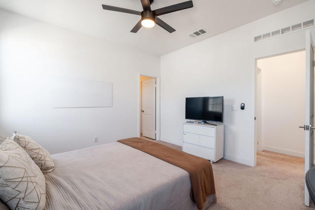 Newly built in 2025, this modern two-story condo in the highly sought-after University Park community in Palm Desert offers stylish desert living with energy-efficient OWNED Solar. This light and bright home features 3 bedrooms and 2.5 bathrooms with an open-concept floor plan designed for comfortable everyday living and entertaining.The upgraded backyard creates the perfect outdoor living and entertaining space, featuring a built-in BBQ with stacked stone and granite countertop, custom pavers, and artificial turf for a beautiful low-maintenance yard ideal for relaxing or hosting guests.Residents of University Park enjoy a low HOA with amenities including multiple swimming pools, shaded playground, expansive event lawn with stage, BBQ areas, fire pits, and dog parks.Conveniently located near top shopping, dining, parks, and entertainment in Palm Desert, with easy access to major roads, this home offers the perfect blend of new construction, modern amenities, and resort-style community living in the Coachella Valley.