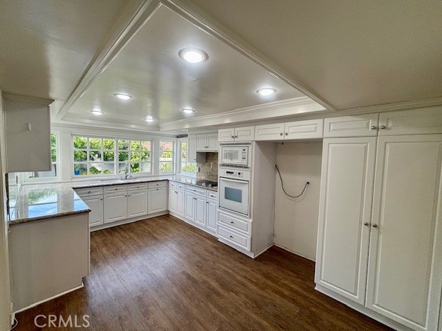 Wow! All new wood floors down stairs, new carpet up stairs, new 6-inch baseboards, new windows, remodeled kitchen with granite counter tops, scraped ceilings, LED lights in all rooms, crown moldings throughout, fresh paint inside and out, end of a flat cul-de-sac location, excellent school district. The entry is very grand, large living room and dining room. The kitchen is central to the downstairs, with informal breakfast knock. The family room has a fireplace and French doors to the lush backyard. This home has a full bath and bedroom downstairs. Inside mud room with laundry area, and direct access to 2 car garage. The master bedroom is very large and has a huge private deck. The remaining two bedrooms upstairs are very nice size with walk in closets. A/C and the cool ocean breezes keep this home the perfect temperature all year round.