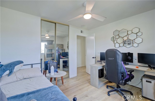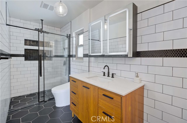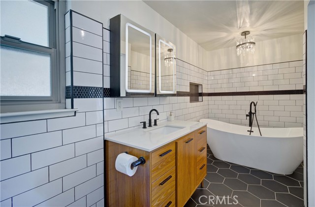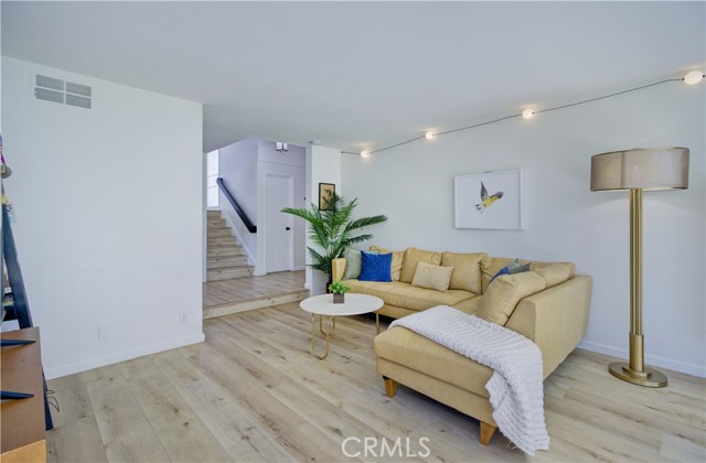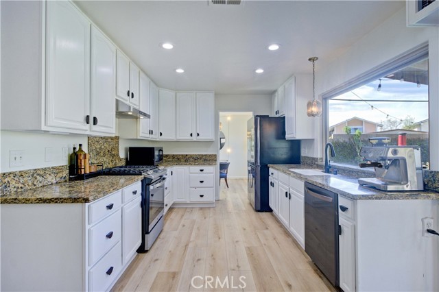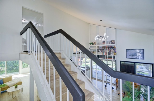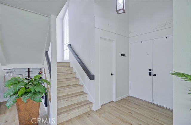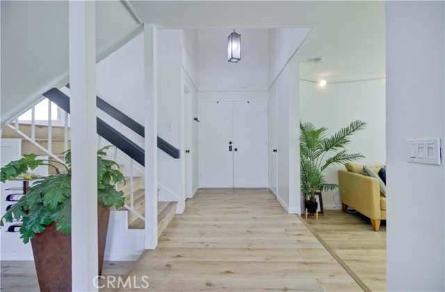 Recently remodeled mid-century four-bedroom, three-bath home on a cul-de-sac in the highly desirable ABC School District! Striking curb appeal, gorgeous landscaping and beautiful new custom laser-cut steel doors lead to a private courtyard entry, double front doors and two-story foyer with soaring cathedral ceilings. The home has a fantastic layout and is filled with natural light all day long! The huge living room has large windows and sliding doors that open to a side yard. It flows into the dining room, which sits just off the kitchen, and is perfect for gatherings to everyday meals. The beautifully remodeled kitchen has new appliances, Granite counters, white cabinets, abundant storage and lots counter space. The kitchen, which overlooks the backyard, flows seamlessly into the den/family room, where a custom library wall (gorgeous!) and cozy fireplace create another inviting space to enjoy. Sliding doors lead to a large covered patio and spacious yard, providing the perfect setting for relaxing or play time! Upstairs, the impressive primary suite is huge and has a double-door entry, custom built-in closet system and new lighting. The stunning primary en suite bathroom features a standalone soaking tub, new flooring, Quartz countertops, high-end fixtures, custom lighting, LED mirrors, smart toilet technology and a cute barn door style entrance. It is a showstopper!! The other two bathrooms have also been beautifully remodeled from top to bottom with new flooring, Quartz counters, modern fixtures, designer lighting, LED mirrors and smart toilets. Three additional bedrooms offer plenty of space for family, guests or a home office. The home has been thoughtfully updated with wide-plank LVP flooring, fresh interior and exterior paint, new lighting, custom shades in the living room and bedrooms, and dual-pane windows. It has a direct-access two-car garage. The backyard has a wonderful collection of fruit trees including apple, peach, dwarf lime, pomegranate, sweet olive, plus a blueberry, kale, and beautiful roses. And in the front, several different types of Maple trees (about to bloom!) and a neighborhood famous bush, trimmed to look like a bear!! The location is fantastic with Don Knabe Regional Park a few blocks away and shopping, restaurants, and freeways nearby. Don’t miss the opportunity to make this beautiful home yours!