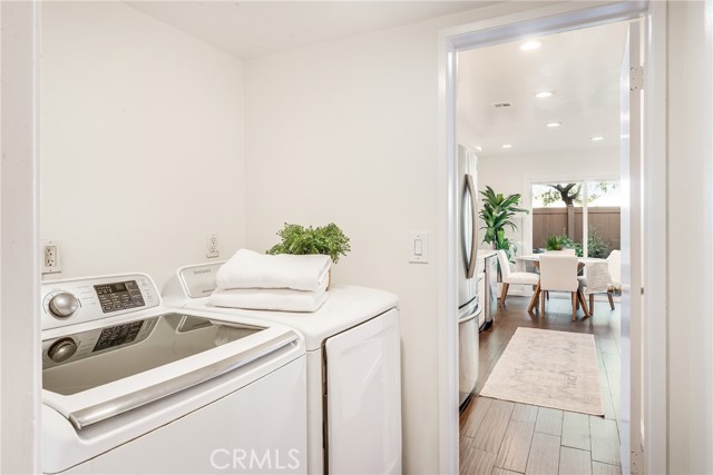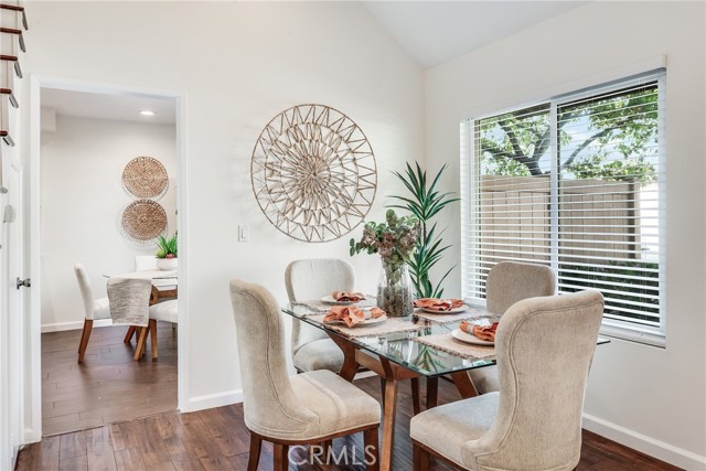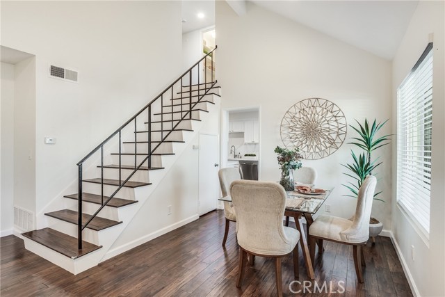 Here's a sharp townhouse that should be at the top of your viewing list. Enter into a spacious living room with high ceilings and tons of light. Entertain in the adjacent dining area. Admire the attractive kitchen boasting white cabinetry, quartz counters and stainless appliances. A comfy breakfast nook is close by with access to a private fenced patio area perfect for outdoor living and grilling on a warm summer day. Convenient in-unit laundry room is adjacent to the kitchen. The direct access to a two car garage adds so much convenience. Three bedrooms are located on the second level including spacious primary bedroom with walk in closet. Hardwood floors throughout, freshly painted interior. This unit shows beautifully and offers a lot of options for an affordable price. You know these don't last long so arrange a showing soon or miss the boat.