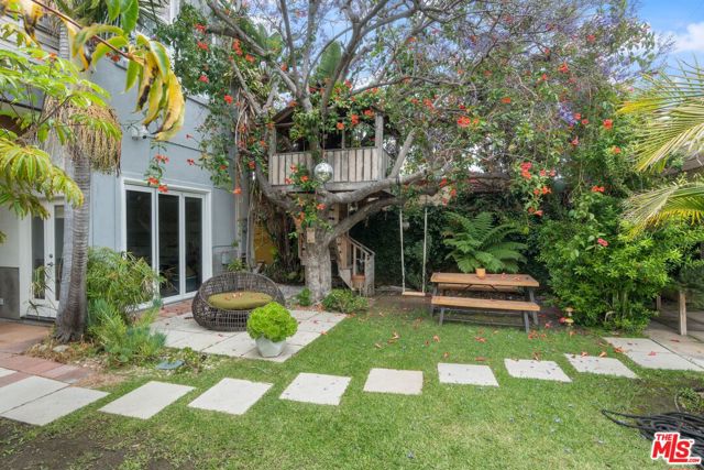 Welcome to 678 Broadway, a fully-furnished move-in ready architectural residence in sought-after Venice Beach. This 4-bedroom (+ bonus room), 3-bathroom home sits discreetly behind gates and tall hedges, offering a calm, private retreat at the center of Venice. Thoughtfully designed for both functional daily living and entertaining, the home balances clean lines, natural light, and inviting outdoor spaces.Once the personal residence of a respected local designer, the home is filled with volume and light. Vaulted ceilings, ample windows, and skylights create an airy atmosphere throughout, while carefully chosen natural materials bring warmth and durability.The primary suite feels quietly elevatedtree-lined, peaceful, and spa-likewhile nearly every room enjoys its own patio or balcony. The chef's kitchen features high-end stainless steel appliances, generous storage, custom cabinetry, and a built-in dining nook that naturally becomes the heart of the room.A generously sized first-floor bonus room (not pictured) offers flexibility for a home office, studio, media room, or playroom. Living spaces open easily to the outdoors, where a private backyard unfolds as a series of inviting outdoor areas with lush landscaping, a custom treehouse, grassy lawn, and an outdoor fireplace.Additional amenities include a rooftop deck and gated carport parking. Just moments from Abbott Kinney, Rose Avenue, and the beach.
