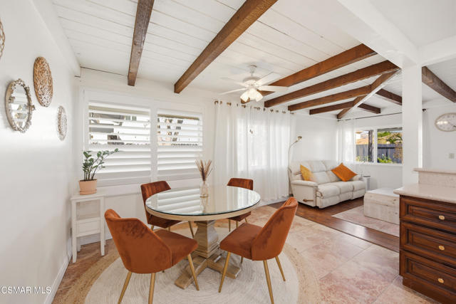 Welcome to this beautifully maintained single-story home in the highly sought-after Arneill Ranch community of Camarillo. Offering great curb appeal with freshly painted exterior and all-new landscaping, this light and bright home features a versatile floor plan designed for comfortable everyday living and easy entertaining.Step inside to soaring ceilings in the living room, complemented by an adjacent dining area, creating an open and inviting atmosphere. The kitchen offers abundant cabinetry, a charming breakfast nook, and flows seamlessly into the family room highlighted by stunning wood beam ceilings--adding warmth and character to the space.The spacious primary suite features direct access to the backyard and an ensuite bathroom with dual vanities, a dedicated makeup vanity, and ample storage. Two additional guest bedrooms are well-sized and share a full hall bathroom.A unique bonus loft space above the garage provides flexible use--ideal for a home office, gym, or creative studio.Enjoy outdoor living in the private backyard with a covered patio, mature fruit trees, and a grassy area perfect for relaxing or entertaining. The side yard offers potential RV parking, while additional highlights include a 2-car garage, carport, and extended driveway parking. Leased solar panels add energy efficiency and cost savings.Located in a desirable Camarillo neighborhood close to parks, shopping, dining, and top-rated schools, this home offers an exceptional opportunity you won't want to miss.