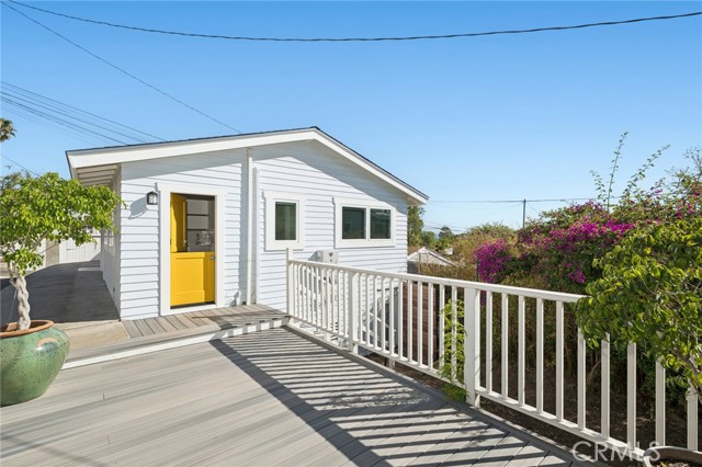 Tucked along Jasmine Street in North Laguna, this detached back unit ADU offers a coastal location. Located behind the main residence, the standalone one-bedroom, one-bath home provides a separate living space while remaining near Laguna Beach’s beaches, galleries, restaurants, and cafés. Natural light fills the interior while ocean breezes move through the home, creating a bright and open atmosphere. The layout connects easily to the outdoors, opening to a deck that offers space to enjoy the surrounding greenery, along with peek-a-boo ocean glimpses through the trees. A small garden area provides an additional outdoor space. The property includes an in-unit washer and dryer, a dedicated parking space, and a storage unit, offering convenience and functionality.