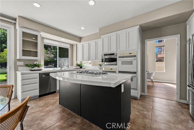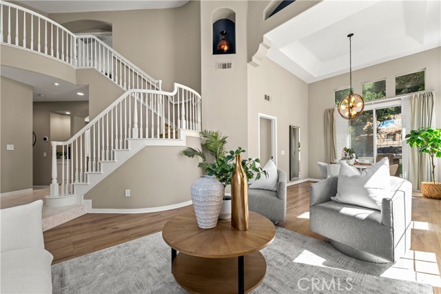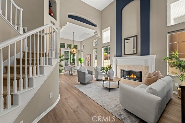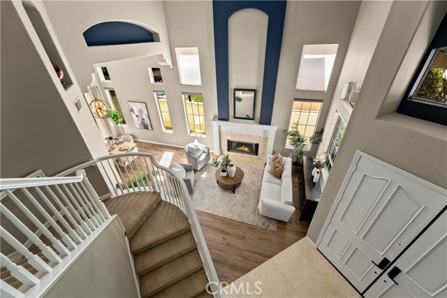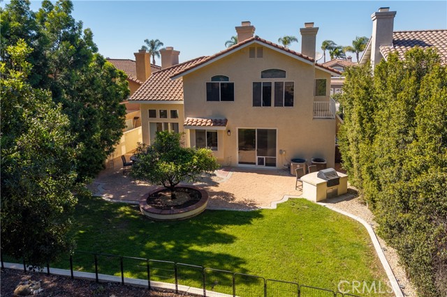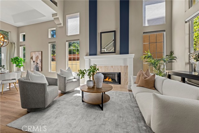Welcome to this beautifully maintained 5 bedroom, 3 bathroom home offering approximately 2,900 square feet of living space in one of Anaheim Hills’ desirable neighborhoods. With soaring ceilings, abundant natural light, and multiple living and entertaining spaces, this home offers the ideal combination of comfort, functionality, and location. Enter through double doors into an impressive foyer with sweeping staircase. To the right is the formal living room with fireplace and adjacent formal dining room with sliding doors leading to the backyard, creating an inviting space for gatherings. Luxury vinyl flooring enhances the main living areas. Just off the entry is a private office that can easily serve as a fifth bedroom, ideal for guests or working from home. The spacious family room features a fireplace, wet bar, surround sound speakers, and flows seamlessly into the breakfast nook and kitchen, making it the heart of the home. The kitchen is designed for both everyday living and entertaining, featuring a center island with 5-burner cooktop and breakfast bar seating, along with three ovens, microwave, dishwasher, trash compactor, refrigerator, walk-in pantry, and recessed lighting. The main floor also includes a ¾ bathroom and laundry room with sink. Upstairs, the primary suite is a true retreat, entered through double doors and offering an oversized bedroom with sitting area, dual-sided fireplace, ceiling fan, walk-in closet with built-ins, and access to a private deck. The remodeled primary bathroom features dual sinks, updated cabinetry, soaking jacuzzi tub, and a large walk-in shower with dual shower heads. Three additional upstairs bedrooms are generously sized, with one offering flexibility as a bonus room, all with ceiling fans. Step outside to a private backyard perfect for relaxing or entertaining, complete with patio, built-in BBQ, grassy area, mature landscaping, and hillside backdrop providing added privacy. Additional features include 3-car garage, EV charger, tankless water heater, whole house fan, and one recently replaced HVAC system and freshly painted exterior. Ideally located near award-winning schools, neighborhood parks, scenic hiking and biking trails, shopping, dining, and with convenient freeway access, this home offers the best of Anaheim Hills living.