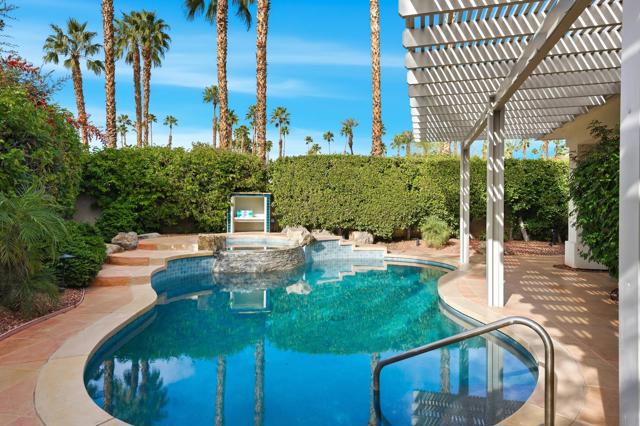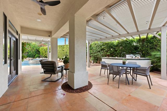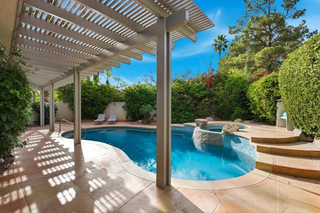 ANNUAL FURNISHED LEASE WITH SOLAR - Putting Green, Pool, Privacy and Price Perfection. Everything renters want, they'll find at this 3BD/3BA spacious home. The primary suite with a king sized bed has a secluded office attached, for those who need privacy on a zoom call before they enjoy their wine in the jacuzzi. The 2nd bedroom fitted with a queen sized bed and a private TV also has an en suite bathroom. A 3rd bedroom with a queen sized bed and private TV; plus a 3rd bath/powder room with a shower accessible from the hall, complete anyone's wish list. Your biggest problem will be where to have breakfast; in the game room watching tv? At the kitchen bar chatting with the cook? In the dining room looking at the Mountain View? Or perhaps next to the pool with an iPad reading under the pergola. Sit quietly in the living room or cuddle on the family room oversized couch watching the fireplace and your favorite binge watch simultaneously.