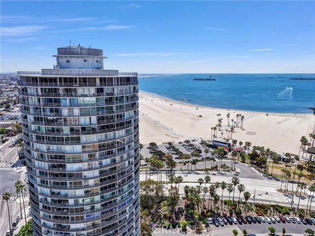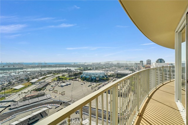 Spectacular 31st-floor ocean-view residence at the iconic International Tower Long Beach, two assigned subterranean parking spaces, breathtaking panoramic views from every room, and a large curved wrap-around balcony. Enjoy sweeping vistas of the Pacific Ocean, beach, marina, Catalina Island, the historic RMS Queen Mary, sparkling city lights, and unforgettable sunsets. This home also provides one of the best private vantage points in the city for the world-famous Long Beach Grand Prix. This beautifully maintained 1-bedroom, 1.5-bath residence features high-quality finishes throughout, including custom cabinetry with intelligent soft-close doors and expanded storage, granite countertops, stainless steel appliances, and timeless travertine flooring. The primary bathroom showcases artistic designer ceramic tile work. Floor-to-ceiling sliding glass doors maximize natural light and frame the spectacular ocean views, while an easy-to-operate shade system lets you adjust the light for comfort and ambiance. The spacious bedroom includes a custom closet and mirrored accents. Additional highlights include two subterranean parking spaces, an in-unit washer and dryer, refrigerator, microwave, and generous storage. Residents enjoy resort-style amenities, including 24-hour concierge service, a pool, a spa, a fitness center, and secure building access. Located in the heart of downtown Long Beach, just steps from the beach and near the Long Beach Convention Center, Pine Avenue Long Beach, and the East Village Arts District, along with renowned restaurants, shopping, entertainment, and nightlife. A rare opportunity to experience luxury high-rise living with truly unmatched ocean views. Opportunity is knocking!
