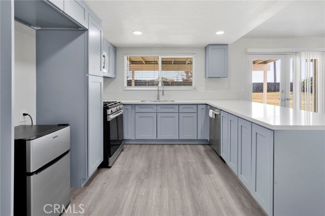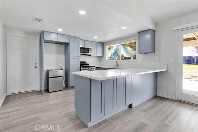Welcome to this stunning, fully remodeled 3-bedroom, 2-bathroom home nestled in a great commuter-friendly neighborhood in Victorville. Boasting 1,377 square feet of living space, this charming residence sits on a large corner lot, providing ample space and privacy. As you approach the property, you'll be greeted by a meticulously maintained rock landscaped front yard, complete with a circular driveway that adds a touch of elegance and convenience. Step inside and be captivated by the inviting open concept layout. The spacious living area seamlessly connects to the dining space and kitchen, creating an ideal environment for entertaining guests or spending quality time with family. The kitchen has been thoughtfully redesigned and features brand new cabinets, appliances, and stylish quartz countertops, making it a chef's dream come true. One of the highlights of this property is the fully fenced backyard to play freely. You'll also find a covered patio, perfect for relaxing with a morning coffee or hosting outdoor gatherings. The abundant space in both the front and backyard offers endless possibilities for gardening, creating a personalized oasis, or even adding a pool. Conveniently located, this home is in close proximity to shopping centers, offering a wide array of retail and dining options. Additionally, its easy access to the freeway ensures effortless commuting and allows you to explore the surrounding areas with ease. Don't miss the opportunity to make this fully remodeled home yours.