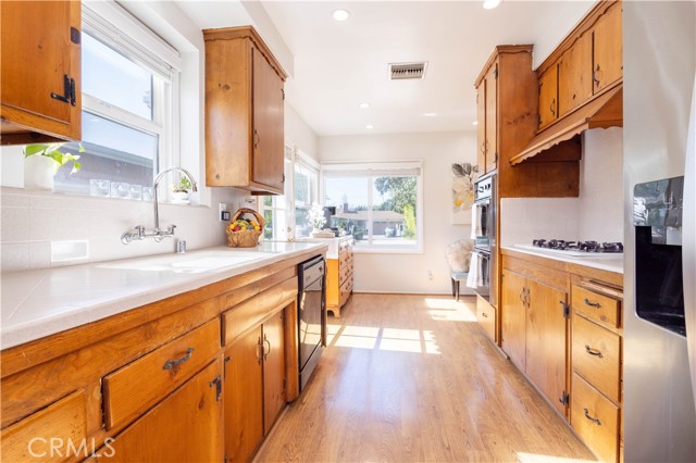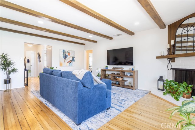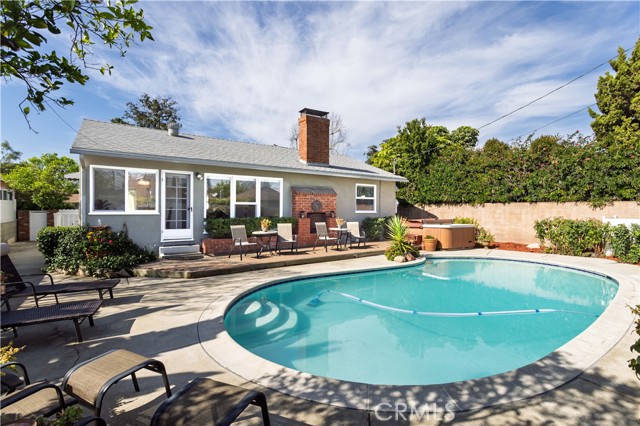 First Time Ever on the Market! Charming 3 Bedroom Pool Home with Timeless Appeal. Welcome to this stunning 3 bedroom, 2 bath pool home that exudes character and undeniable charm. Boasting incredible curb appeal, a stately magnolia tree, and a distinctive red ribbon driveway leading to an attached 2 car garage, this home makes a memorable first impression. A brick walkway and patio guide you to the inviting front door. Step inside to a bright and open living room, where original hardwood floors and large double pane windows fill the space with natural light. Exposed beams complement the brick fireplace, a unique feature that also doubles as a backyard BBQ. All bedrooms are generously sized, including a versatile convertible bedroom with wood paneling, a display ledge for art, and a full closet. The primary suite features his and hers closets and ample room to unwind. Bathrooms include a remodeled full bath with tub, a glass enclosed shower, and updated countertops, plus a convenient half bath for guests near the entry. LED lighting throughout adds a modern touch. The kitchen, lovingly maintained, showcases warm knotty pine finishes, abundant counter space, built in display shelves, and a cozy breakfast nook perfect for a bench seat. Enjoy seamless indoor outdoor living with doors from both the dining area and kitchen that open to your private backyard retreat. Relax by the sparkling pool and jacuzzi, surrounded by fruit trees and plenty of space for lounging, storage, or a lush vegetable garden. Upgrades include plumbing, sewer line, newer HVAC system, dual pane windows, newer roof, pool plaster & pump, and fresh paint inside and out. This home has truly been cared for by the original owners and is move in ready. A rare gem that has never before been on the market, this property combines timeless style, comfort, and outdoor enjoyment. Experience the best of North Hollywood/Valley Village living in this exceptional residence. It is conveniently located near major freeways, a new Target, and the newly built NoHo West Development, which includes Trader Joe’s, Nordstrom Rack, LA Fitness, Ulta, Urbane, California Fish Grill, and more. Don’t miss your chance to make it your own!