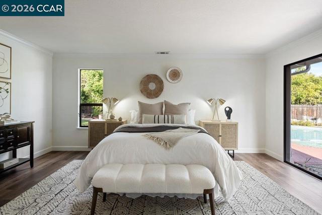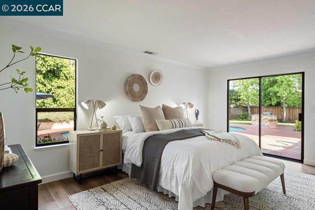 Welcome to 3104 Kirby Lane in Walnut Creek -a beautiful contemporary 1-story home situated on a desirable corner lot in the heart of Northgate. Offering 5 bedrooms & 3 full baths, this fantastic home has been significantly remodeled & upgraded. Designed for both comfort & entertainment, this home showcases a bright & inviting family room w/a cozy fireplace, a formal dining room & an incredible gourmet kitchen complete with stone countertops, breakfast bar, eat-in dining area & modern appliances, including a built-in oven & electric cooktop! Enjoy a blend of tile & luxury flooring, soaring ceilings & plenty of windows that fill the home with natural light. The attached large 3 car garage provides convenient interior access, while central heating & new air conditioning ensure year-round comfort. Plus a rubust solar system allows for lots of energy efficiency. Step outside to a private backyard surrounded by mature trees providing maximum privacy that includes a fenced yard, large patio, and sparkling in-ground pool—perfect for relaxing or hosting gatherings. Ideally located in the Northgate area of Walnut Creek featuring 12 years of desirable award winning schools including Valle Verde, Foothill & Northgate High! This dream home is close to dining, Boundary Oak golf course & more!