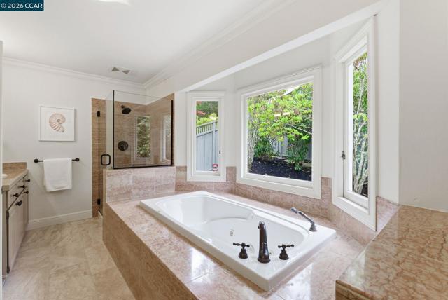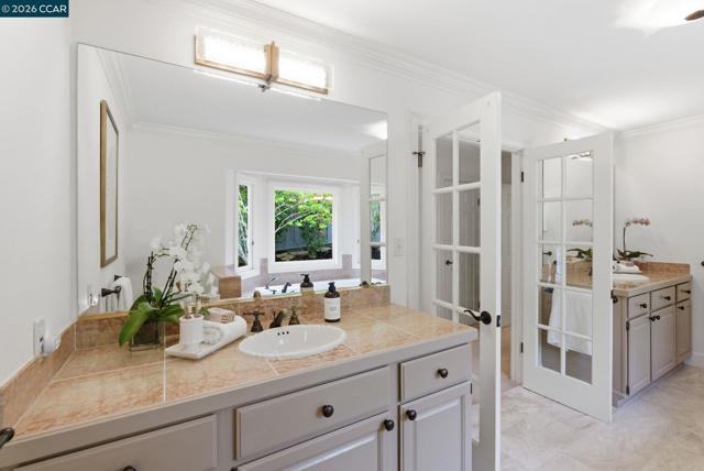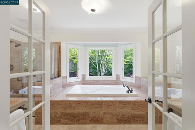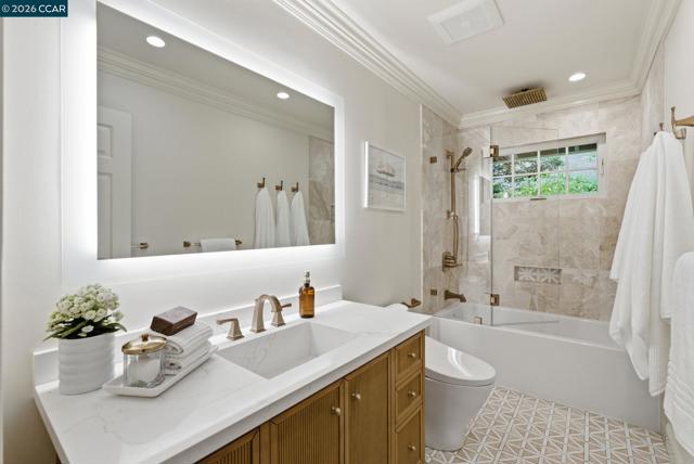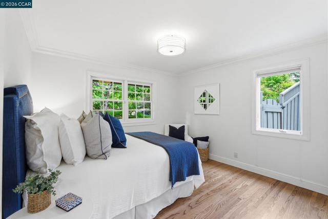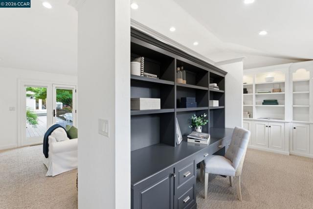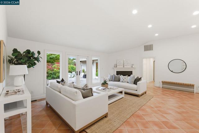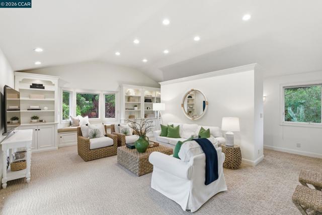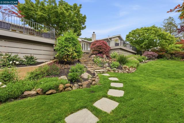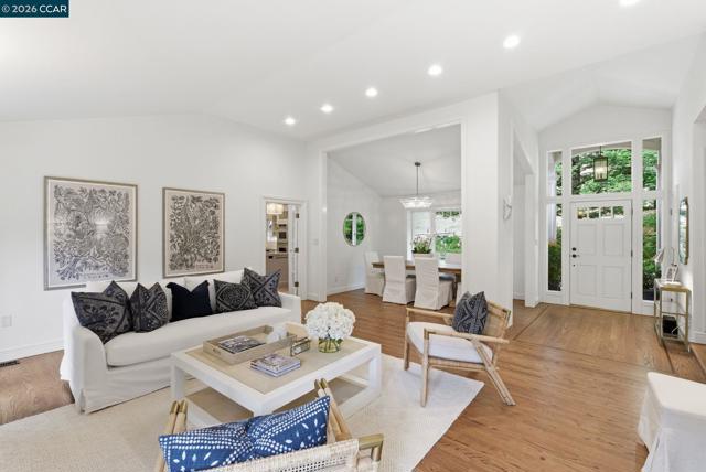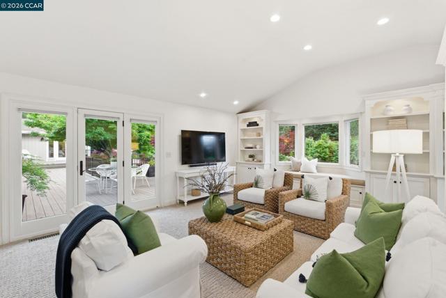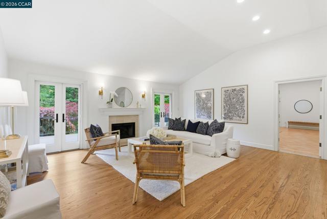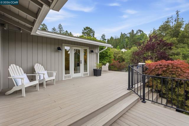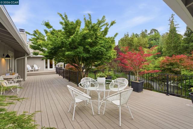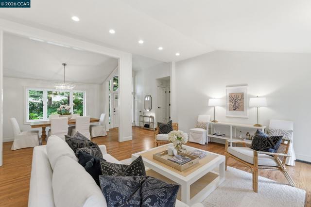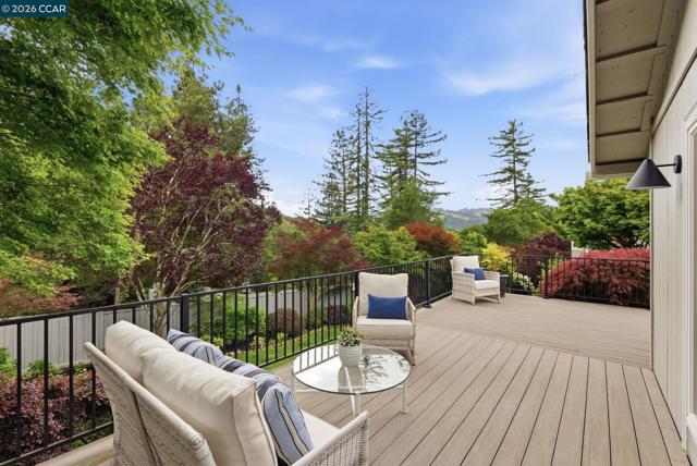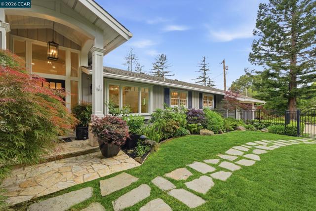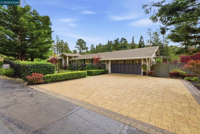Located in the heart of Glorietta, this beautiful 3,072 sq ft California classic blends timeless traditional style with modern comfort, all set on a generous 0.3581-acre lot just minutes from downtown Orinda and Glorietta Elementary. From the moment you arrive, the lush front landscaping creates a warm and inviting first impression. Inside, the home opens to a formal dining room overlooking the gardens and an elegant living room featuring a fireplace and French doors that lead to an expansive deck—perfect for enjoying the stunning backyard and serene surroundings. This updated Orinda rancher offers an ideal balance of sophistication and livability. The spacious primary retreat features vaulted ceilings, a cozy fireplace, and French doors that open to a private deck—an ideal spot for quiet mornings or evening relaxation, and a spa-like bathroom. Three additional bedrooms share a beautifully updated bath, with one of the bedrooms offering direct deck access. At the heart of the home, the kitchen and great room are designed for everyday living and effortless entertaining, with abundant natural light, expansive windows, and French doors that open to the oversized deck and large grassy yard. The updated kitchen includes a generous island with stone countertops, stainless steel appliances, and a new Sub-Zero refrigerator. A separate family room and en-suite office—easily used as a guest suite—provide exceptional flexibility for working from home, hosting visitors, or accommodating extended family. There is an abundance of storage space and one of the larger spaces offers a separate entrance to be used for garden storage or even a wine room.
