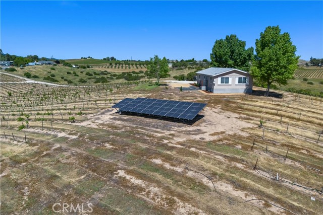 Set on 10.26 usable acres in Paso Robles wine country, this vineyard property combines wide-open space, functional improvements, and panoramic views that stretch across rolling hills and neighboring vineyards. The property is planted with established Zinfandel, Cabernet, and Syrah vines, creating both visual appeal and real agricultural potential. The layout is clean and usable, well-suited for hobby farming, boutique winemaking, or future expansion. The property supports a range of agricultural uses while still appealing to buyers seeking space, privacy, and flexibility. The 3-bedroom, 2-bath manufactured home is permanently affixed (433A) and eligible for traditional financing. Inside, the home offers a bright, open-concept living space with vaulted ceilings and large windows that frame the surrounding landscape from nearly every room. The kitchen opens to the main living area, creating a functional, connected space for everyday living or hosting. New carpet and fresh interior paint make it move-in ready. All bedrooms are well-positioned to capture views, including a primary suite with its own bathroom. An indoor laundry area adds convenience, and the overall layout is simple, efficient, and comfortable. Outside, the setting is what separates this property. A back deck provides a natural place to take in sunsets over the vines, while mature trees and recently improved landscaping around the home create a defined, livable homesite within the larger acreage. The metal barn is a major asset, offering substantial space for equipment storage, workshop use, or agricultural operations. Whether you're storing tractors, tools, or considering future conversion potential, it gives the property real utility that many similar listings lack. Additional features include a ground-mounted solar system, supporting long-term efficiency and lower operating costs. Located within close proximity to Paso Robles while still offering privacy and separation, this property strikes a balance between lifestyle and practicality. It’s not just a view property. It’s a usable, functional piece of land with infrastructure already in place.