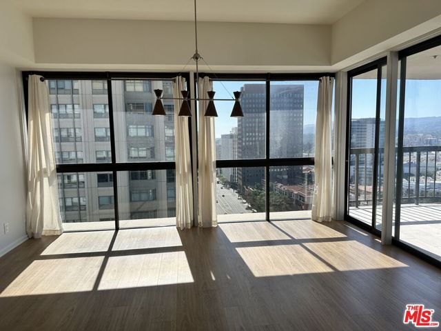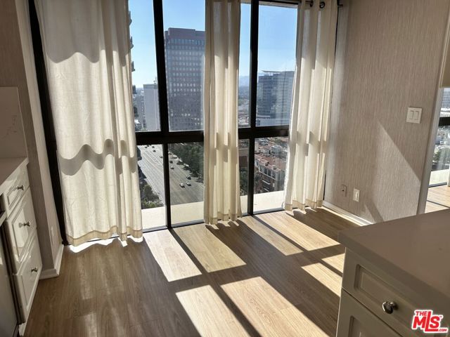 Spectacular, unobstructed 180-degree north-facing city views define this stunning 2-bedroom, 2.5-bath residence with an additional den, located in a full-service high-rise on the prestigious Wilshire Corridor. Floor-to-ceiling windows throughout flood the expansive corner unit offering over 2,100 square feet with natural light. The spacious living and dining areas open to a generously sized balcony, creating an ideal indoor-outdoor flow for entertaining. The open floor plan is complemented by a beautifully renovated kitchen with a charming breakfast area, as well as updated bathrooms throughout. New wood flooring enhances the elegance of the entire home. The oversized primary suite features a large bathroom, a walk-in closet, and additional wall closets, providing ample storage. Residents enjoy a full range of amenities, including a pool, jacuzzi, sauna, gym, and recreation room. The unit also includes two side-by-side parking spaces and a private storage area, along with full-service conveniences such as valet parking, concierge, and package handling. Ideally located near UCLA, Westwood Village, Century City, Beverly Hills, major freeways, and the beach, this residence offers both luxury and convenience in one of Los Angeles' most desirable locations.