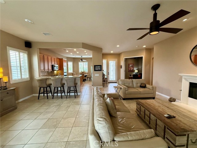 Home in the desirable Del Webb Community Two bedrooms plus a den and office Saltwater pool spa Built-in barbecue Electric awning backs up to green space Putting green Stamp Crete in the front and back Granite countertops large kitchen with breakfast nook Ceramic log gas fireplace Wood shutters Grab bars built-in wide doorways 10 foot ceilings 8 foot doors Raised panel doors Central HVAC Tesla charging in garage Two car garage plus golf cart garage. Golf cart garage does not have a motor. Fully furnished except for one bedroom that’s an exercise room Landscaper Pool person and Water included Internet, and trash are also included