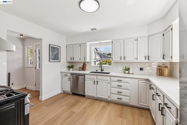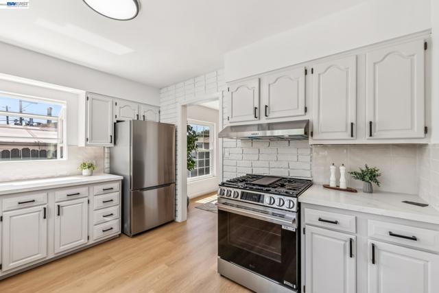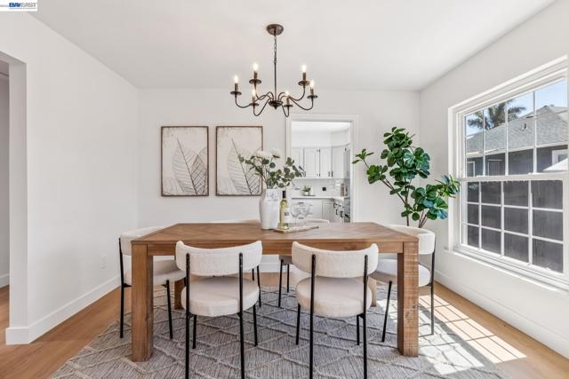 Tucked away on a quiet street in the Las Palmas neighborhood, 9946 Dante Ave in Oakland offers a beautifully updated 2-bedroom, 1-bathroom home designed with today’s buyer in mind. From the moment you arrive, you’ll appreciate the inviting setting, expansive lot, and charming curb appeal. Inside, the home features luxury vinyl plank flooring throughout and an abundance of natural light that enhances the open, airy feel. The modern kitchen has been thoughtfully remodeled with sleek finishes and ample space for cooking and gathering, while the spa-inspired bathroom boasts a soaking tub, walk-in shower, and a stylish contemporary vanity. Step outside and discover the true versatility of this property, with both a spacious front yard and a large backyard perfect for entertaining, gardening, or simply enjoying the outdoors. The detached garage adds convenience and potential for additional use. Ideally located near Downtown San Leandro, regional parks, shopping, and dining, this home combines comfort, style, and accessibility—making it a fantastic opportunity for buyers looking to settle into a move-in-ready home with room to grow.