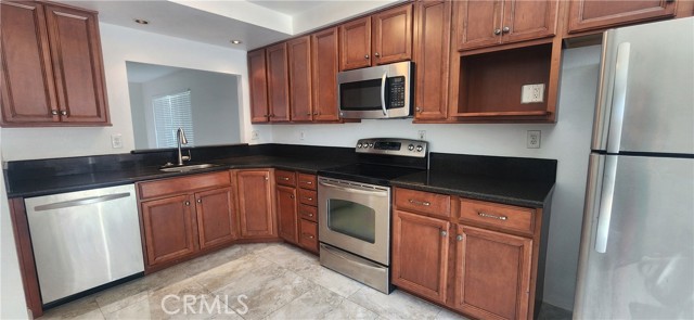 Bright and spacious two-story, end unit townhome in the wonderful community of Cedar Glen with nobody above or below. This beautifully upgraded property features an open floor plan with two spacious bedrooms, large living room, open kitchen, full dining area, upstairs laundry and a private patio. Features include new laminate flooring downstairs & fresh paint, new A/C, scraped/smooth ceilings, new blinds on the windows, upgraded bathrooms, and a chef's dream kitchen! The upgraded kitchen has beautiful cabinetry with soft close pull-out drawers, Quartz counters and stainless steel appliances including the refrigerator that will stay. Upstairs you will find the convenient laundry area in between the bedrooms. The master bedroom is very large and has a walk-in closet with custom organizers. The property has one covered carport with storage, a second reserved space, and guest parking lots. There is a community pool, spa, clubhouse; water, trash, sewer, and basic cable are all included in the HOA dues. Close to parks, trails, shopping, restaurants, schools, and nearby hospitals and freeways. WELCOME HOME!