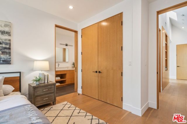 An incredible opportunity to lease a warm, modern residence in the heart of Santa Monica's highly sought-after Ocean Park neighborhood. A hedged and gated entry opens to a private front yard, seamlessly connecting to the main living space through dramatic floor-to-ceiling glass doors. This home features soaring ceilings throughout, creating a light-filled and airy ambiance. The formal dining area is complemented by a built-in bar, ideal for entertaining, while the chef's kitchen impresses with top-of-the-line finishes, a large center island, extensive cabinetry, and custom built-ins. There is one bedroom/office and bathroom on the main level. Up the striking floating wood and glass staircase, the second level reveals a serene primary suite retreat with vaulted ceilings and sliding glass doors that open to a private balcony with tranquil treetop views. The spa-like primary bath offers a soaking tub, glass-enclosed shower, and dual-sink vanity. Additional highlights include generously sized bedrooms, multiple skylights, a dedicated laundry area, and a gated driveway. Perfectly positioned to enjoy the best of Ocean Park and is close to Abbott Kinney and Rose Ave. This exceptional home captures coastal living at its finest.