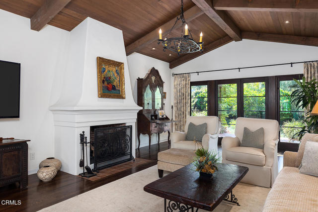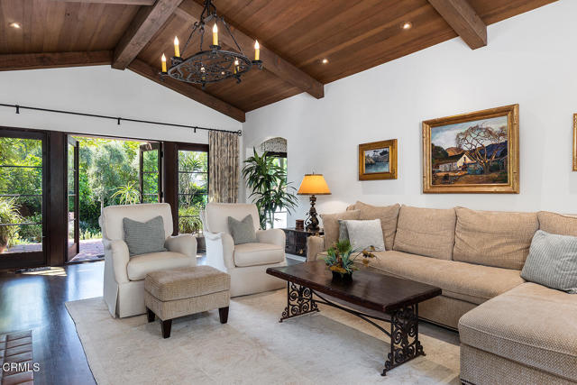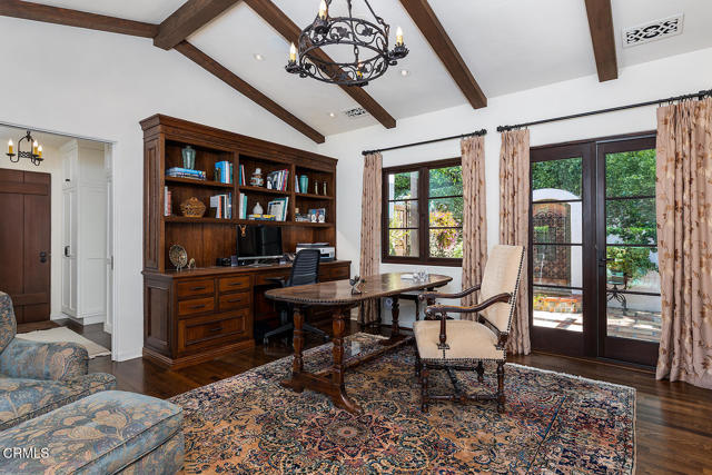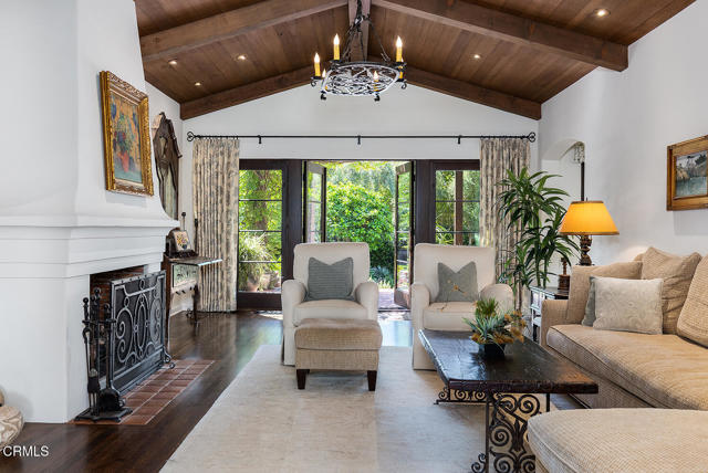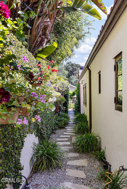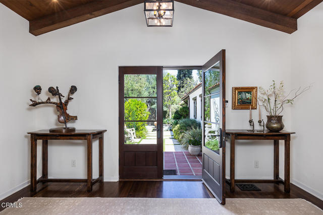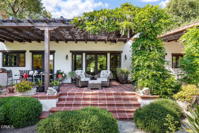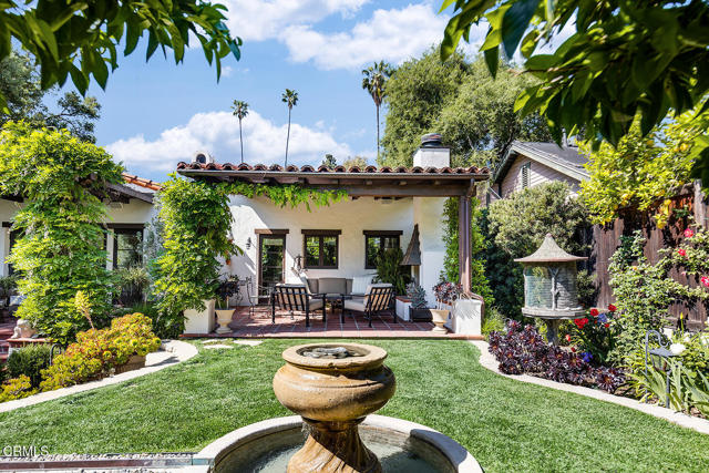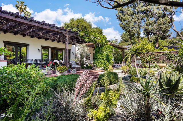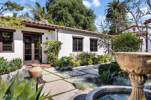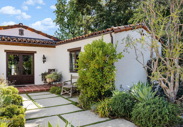Nestled in the prestigious Lower Arroyo neighborhood of Pasadena, this 2016 custom-built Spanish estate is a masterwork of architectural pedigree and modern amenities. Designed by the esteemed David Serrurier and executed by contractor John Walker, this breathtaking single-story home is framed by spectacular gardens and an enchanting entry courtyard featuring soothing vintage fountains. Inside, the four-bedroom, three-bathroom layout--complete with a dedicated office--is defined by its meticulous CUSTOM craftsmanship, from the custom lighting, interior doors, and hand-selected tile in every bath, in addition two antique vanities. The comfortable yet elegant living room features vaulted wood beamed ceilings, a fireplace, and French doors leading to the expansive backyard patio, offering the very best of the California indoor-outdoor lifestyle. The heart of the home is a chef's kitchen boasting quartzite countertops, high-performance Wolf appliances, and a built-in breakfast nook with hidden storage. The formal dining room is ideally situated just off the kitchen for convenient gatherings. The home's thoughtful layout features widened hallways that enhance the sense of scale and flow, providing a sophisticated transition between living areas. On one wing, you'll find a private retreat consisting of three spacious bedrooms, including a tranquil primary suite with vaulted wood beamed ceilings and a large custom built-in closet. A fourth bedroom suite is positioned on the opposite side of the home, ensuring guests have their own quiet sanctuary within this thoughtfully planned estate. The clean and bright laundry room, which has abundant storage, is located near the attached 2 car garage. The home's infrastructure is entirely contemporary, featuring a Spanish clay tile roof, custom copper rain gutters, 7 skylights, and all-new HVAC, electrical, and plumbing systems. Outside, the living space expands into a sprawling 460-square-foot trellis & a 271-square-foot covered patio, creating a seamless flow to the step-down built-in barbecue and extra-wide driveway. Additional modern upgrades throughout the property with the utmost detail, including custom fixtures and built-ins throughout, a premium integrated sound system, Hollywood window screens, a 24 Hour ventilation fan in the basement, a built-in Murphy bed & more. This property represents a rare opportunity to own a single story 'new construction' classic in one of Pasadena's most historic and coveted enclaves.