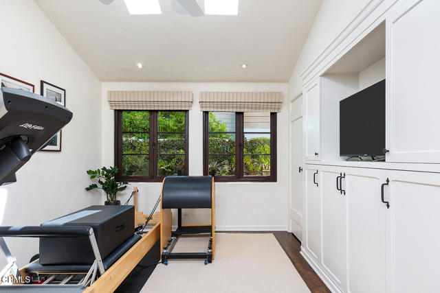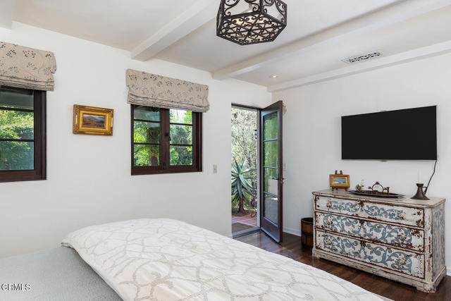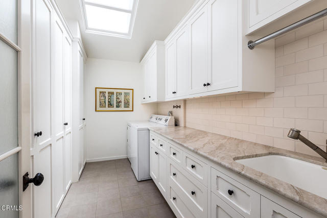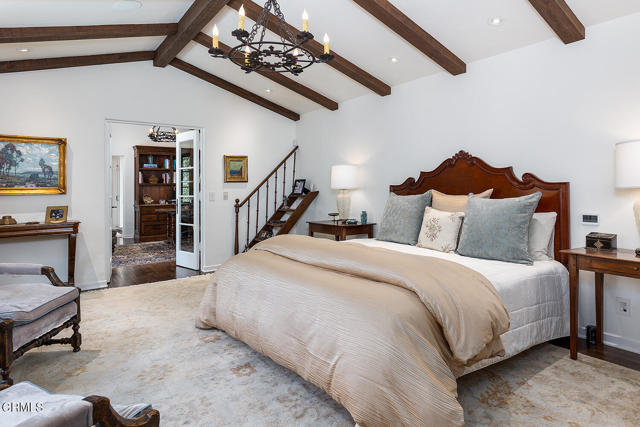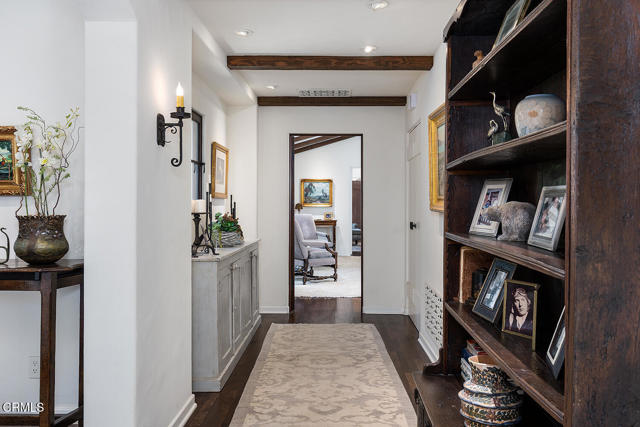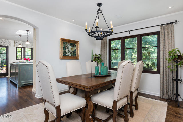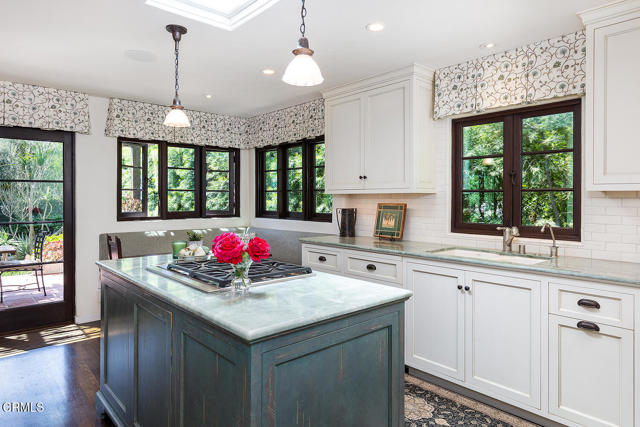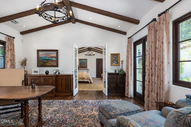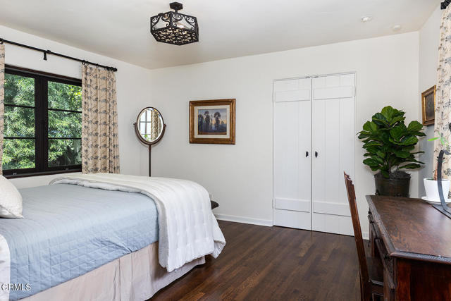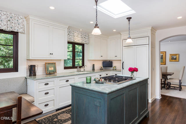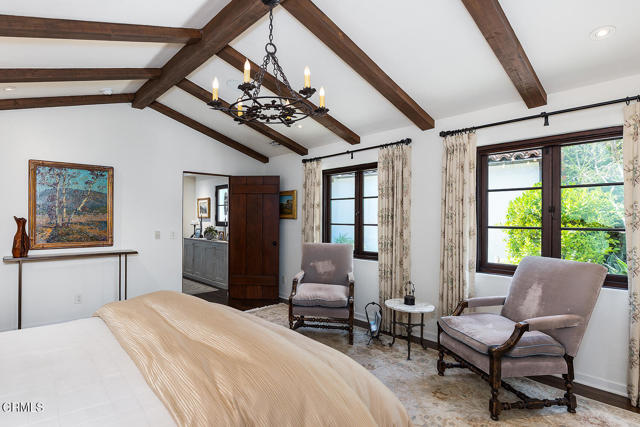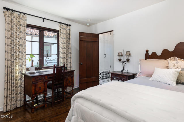 Nestled in the prestigious Lower Arroyo neighborhood of Pasadena, this 2016 custom-built Spanish estate is a masterwork of architectural pedigree and modern amenities. Designed by the esteemed David Serrurier and executed by contractor John Walker, this breathtaking single-story home is framed by spectacular gardens and an enchanting entry courtyard featuring soothing vintage fountains. Inside, the four-bedroom, three-bathroom layout--complete with a dedicated office--is defined by its meticulous CUSTOM craftsmanship, from the custom lighting, interior doors, and hand-selected tile in every bath, in addition two antique vanities. The comfortable yet elegant living room features vaulted wood beamed ceilings, a fireplace, and French doors leading to the expansive backyard patio, offering the very best of the California indoor-outdoor lifestyle. The heart of the home is a chef's kitchen boasting quartzite countertops, high-performance Wolf appliances, and a built-in breakfast nook with hidden storage. The formal dining room is ideally situated just off the kitchen for convenient gatherings. The home's thoughtful layout features widened hallways that enhance the sense of scale and flow, providing a sophisticated transition between living areas. On one wing, you'll find a private retreat consisting of three spacious bedrooms, including a tranquil primary suite with vaulted wood beamed ceilings and a large custom built-in closet. A fourth bedroom suite is positioned on the opposite side of the home, ensuring guests have their own quiet sanctuary within this thoughtfully planned estate. The clean and bright laundry room, which has abundant storage, is located near the attached 2 car garage. The home's infrastructure is entirely contemporary, featuring a Spanish clay tile roof, custom copper rain gutters, 7 skylights, and all-new HVAC, electrical, and plumbing systems. Outside, the living space expands into a sprawling 460-square-foot trellis & a 271-square-foot covered patio, creating a seamless flow to the step-down built-in barbecue and extra-wide driveway. Additional modern upgrades throughout the property with the utmost detail, including custom fixtures and built-ins throughout, a premium integrated sound system, Hollywood window screens, a 24 Hour ventilation fan in the basement, a built-in Murphy bed & more. This property represents a rare opportunity to own a single story 'new construction' classic in one of Pasadena's most historic and coveted enclaves.